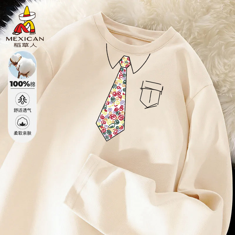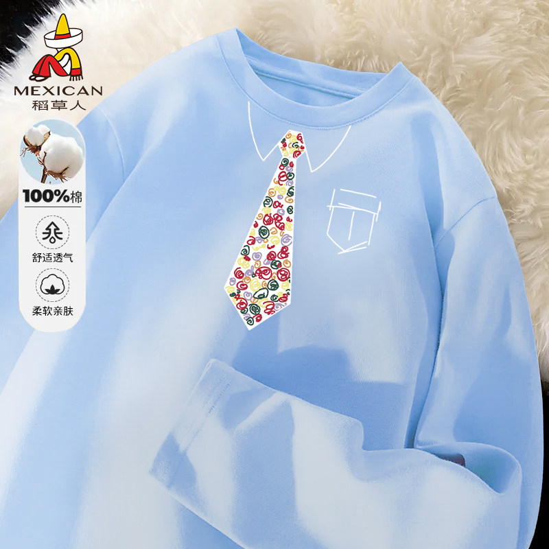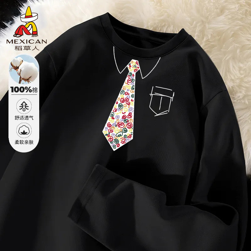 稻草人假领带长袖t恤男秋季国潮电影龙的传人趣味搞笑圆领体恤衫Z