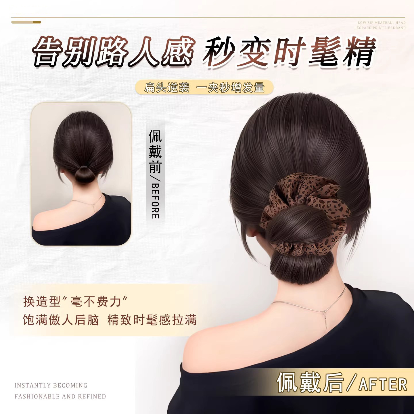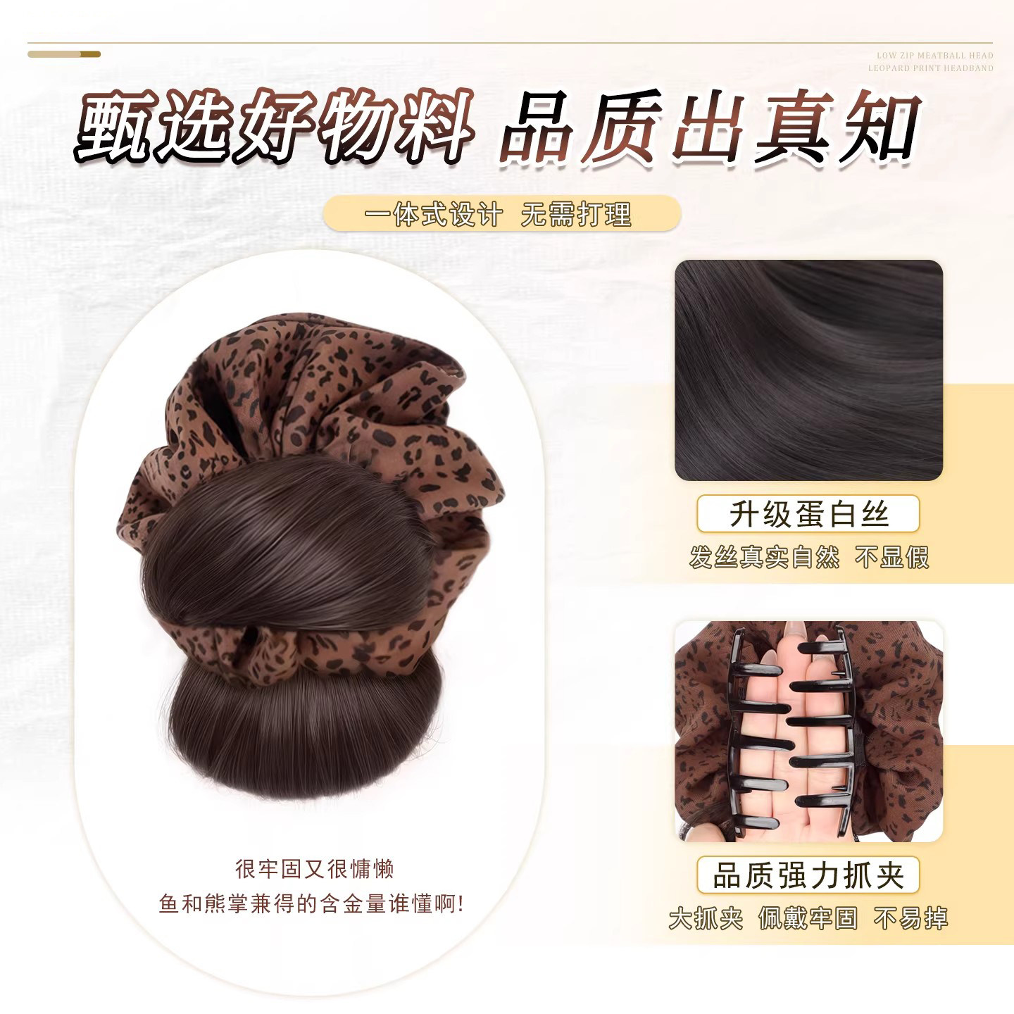丸子头假发抓夹豹纹发圈盘发神器假发包增发量花苞头盘发发型饱满
