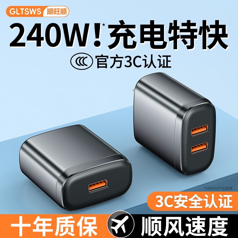 240W智能安全6A超级快充手机充电头USB全协议充电器适用华为荣耀安卓闪充手机平板数码产品22.5W插头通用双口