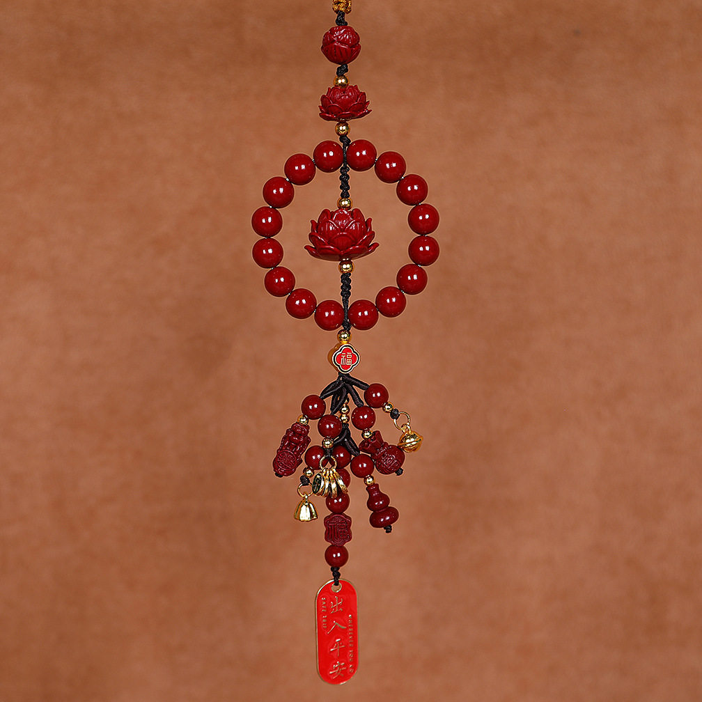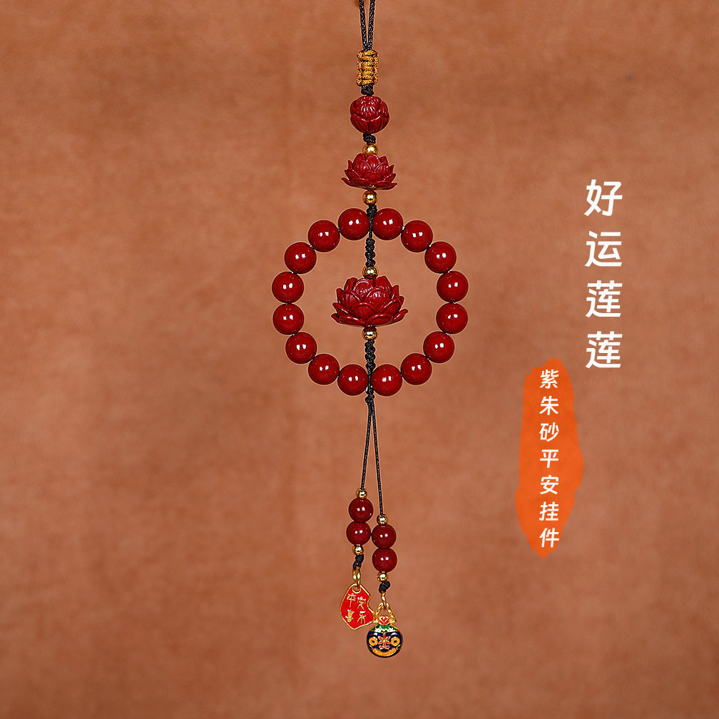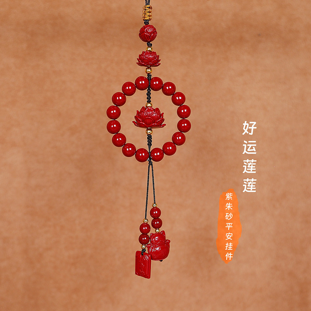 紫金沙汽车挂件高级感朱砂莲花车载挂饰本命年车内后视镜保平安男