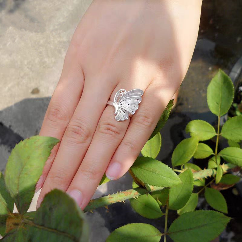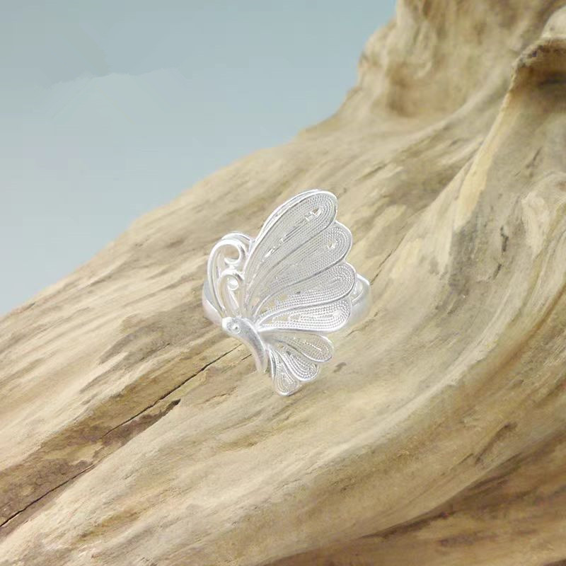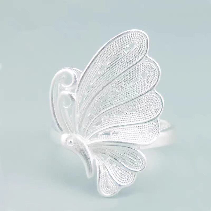 其他家手工花丝银饰999纯银拉丝戒指蝴蝶掐丝送妈妈女友礼物