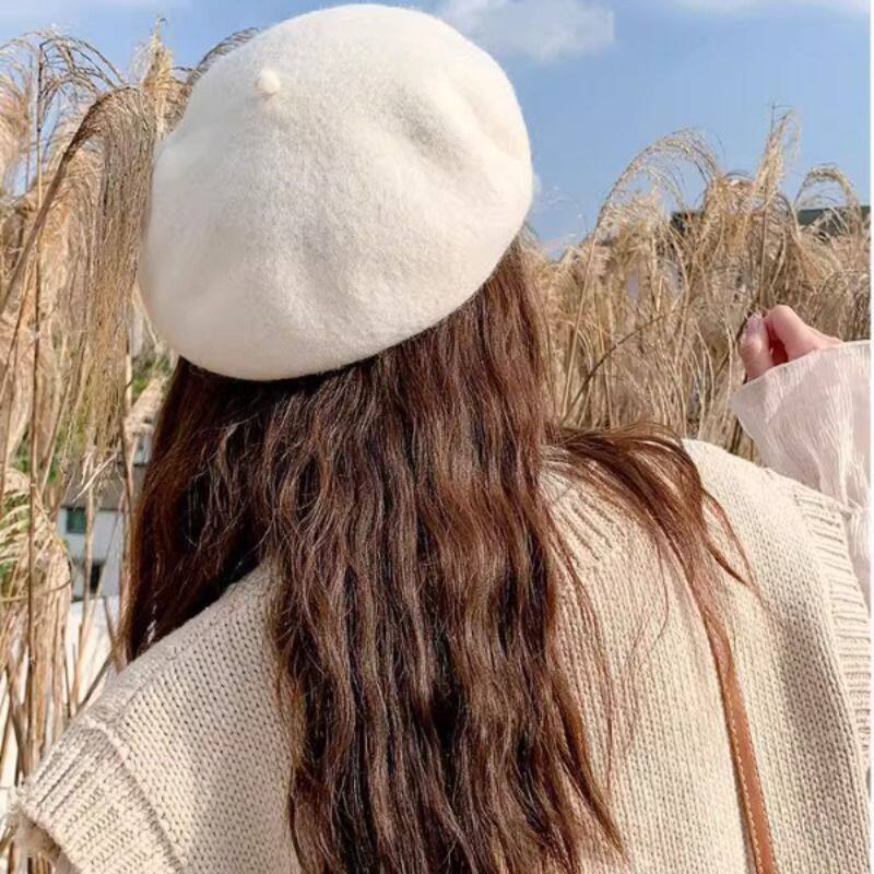 休闲文艺画家加厚立体羊毛贝雷复古帽款蓓蕾帽秋冬季的帽子显脸小