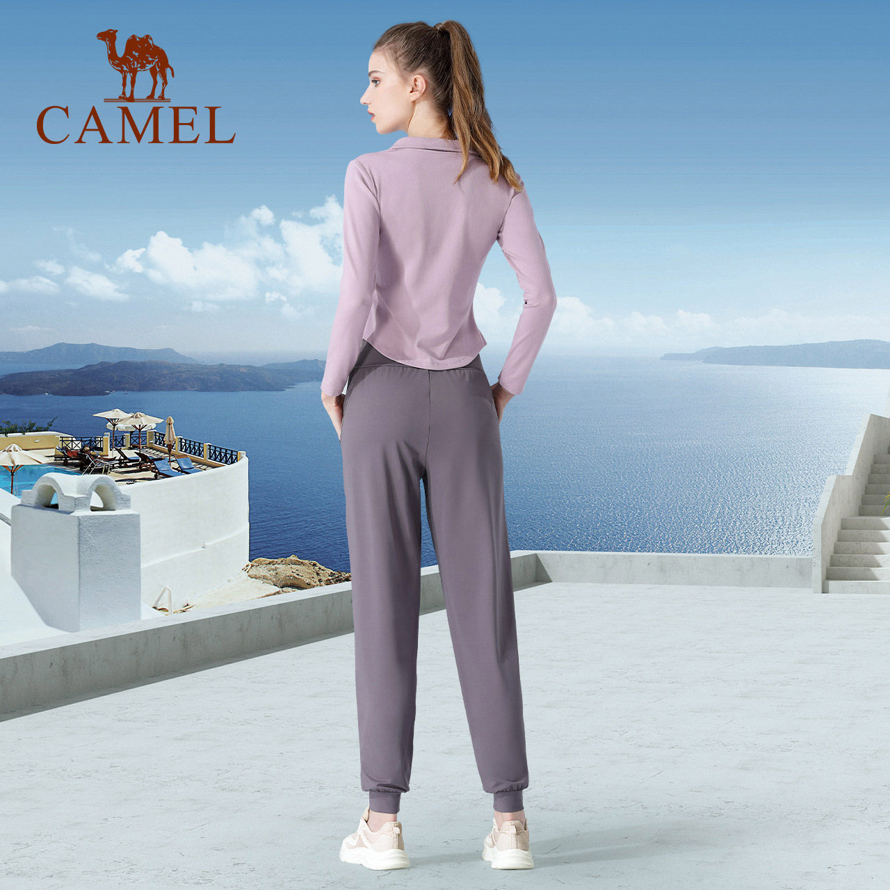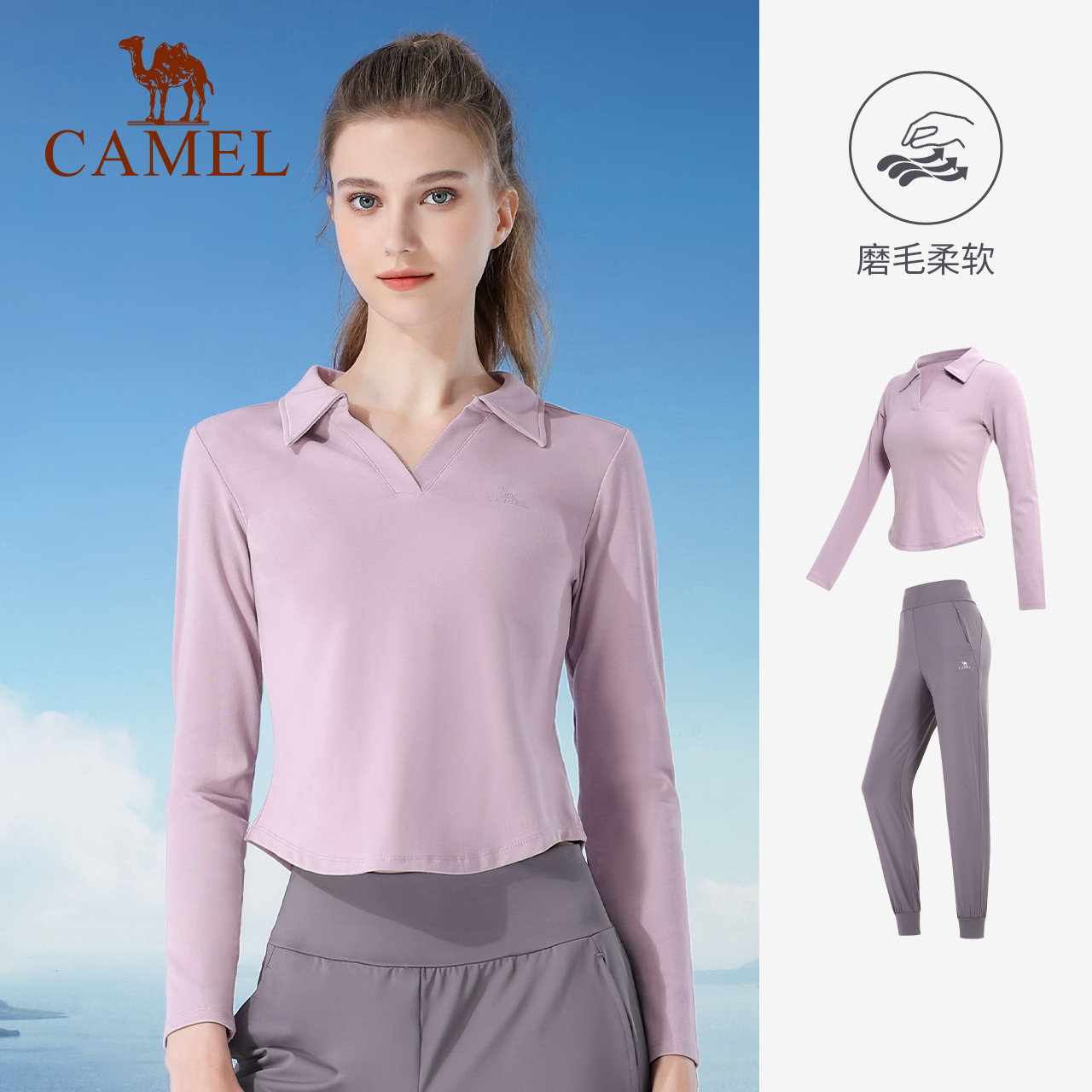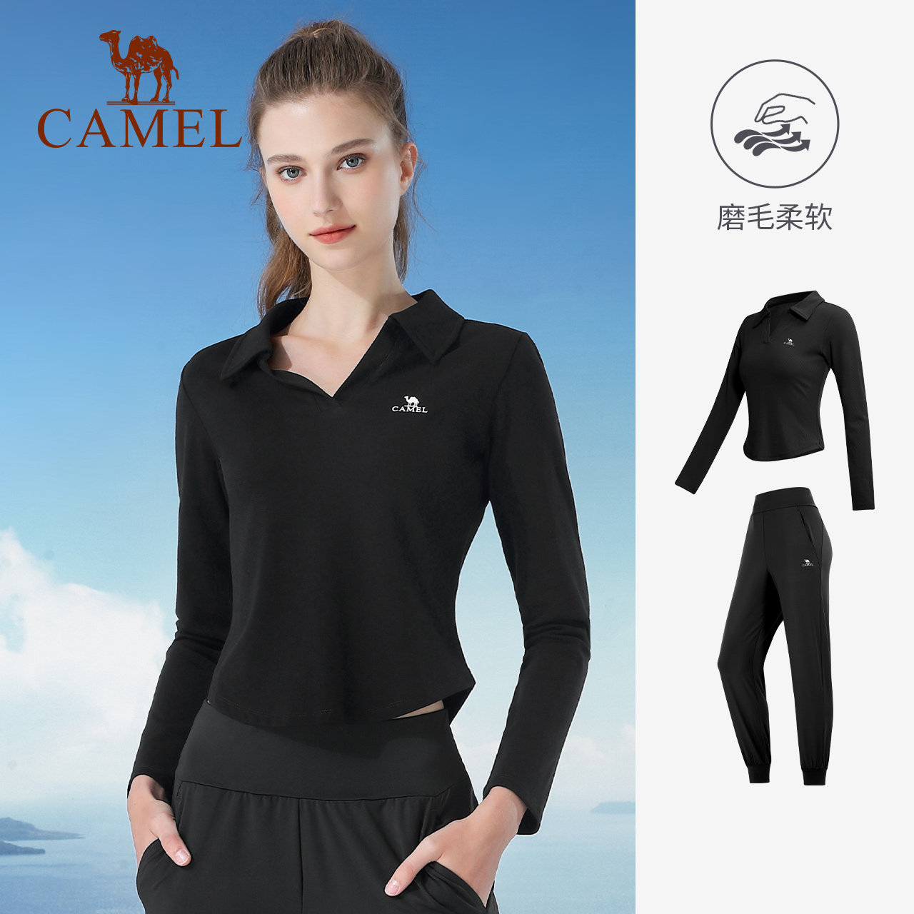 骆驼女装时尚瑜伽运动套装2025春夏休闲健身长袖T恤运动裤两件套