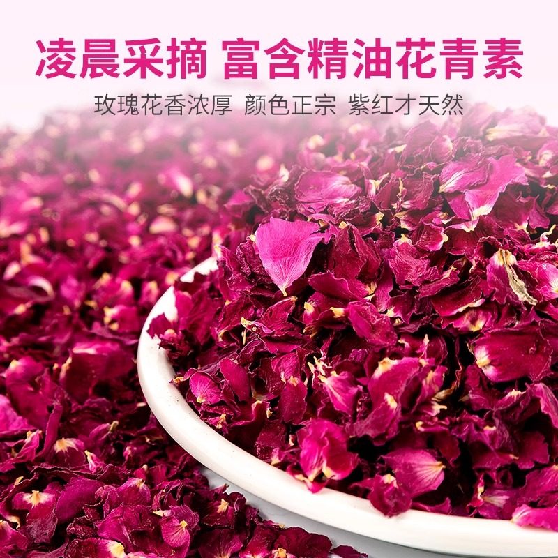 玫瑰花瓣平阴食用重瓣红玫瑰无硫玫瑰花碎装饰摆盘花草茶干花可食