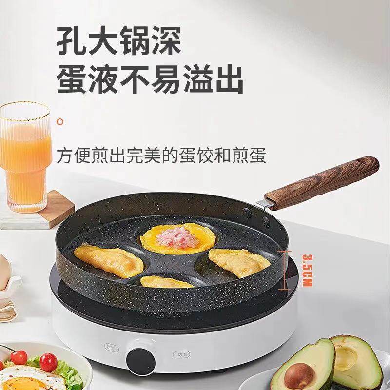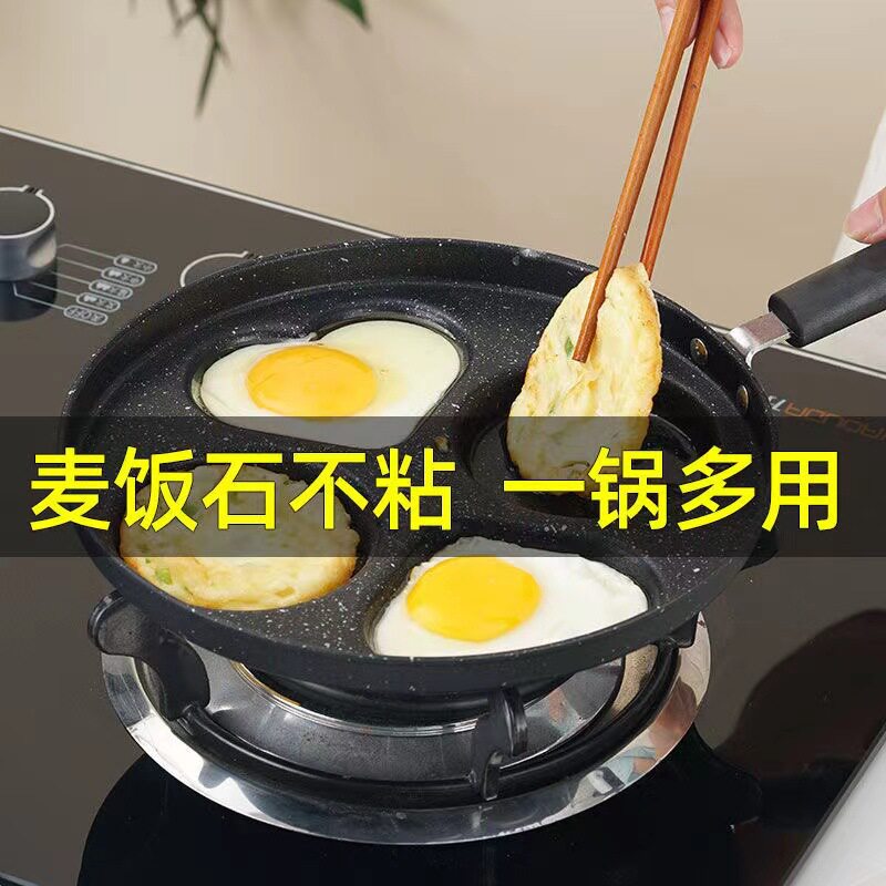 现货批发麦饭石不沾锅四孔煎蛋锅鸡蛋锅平底蛋饺锅早餐多功能模具