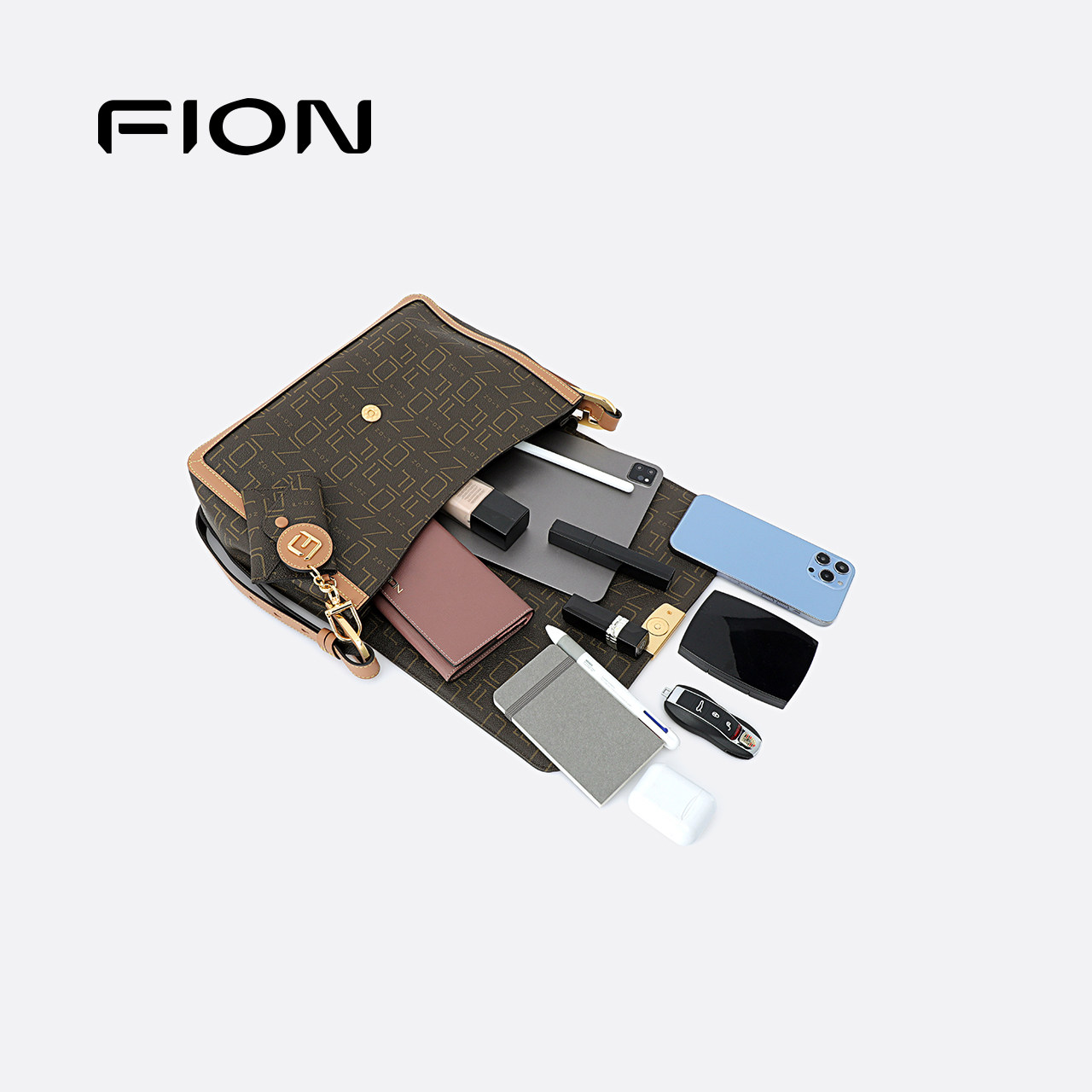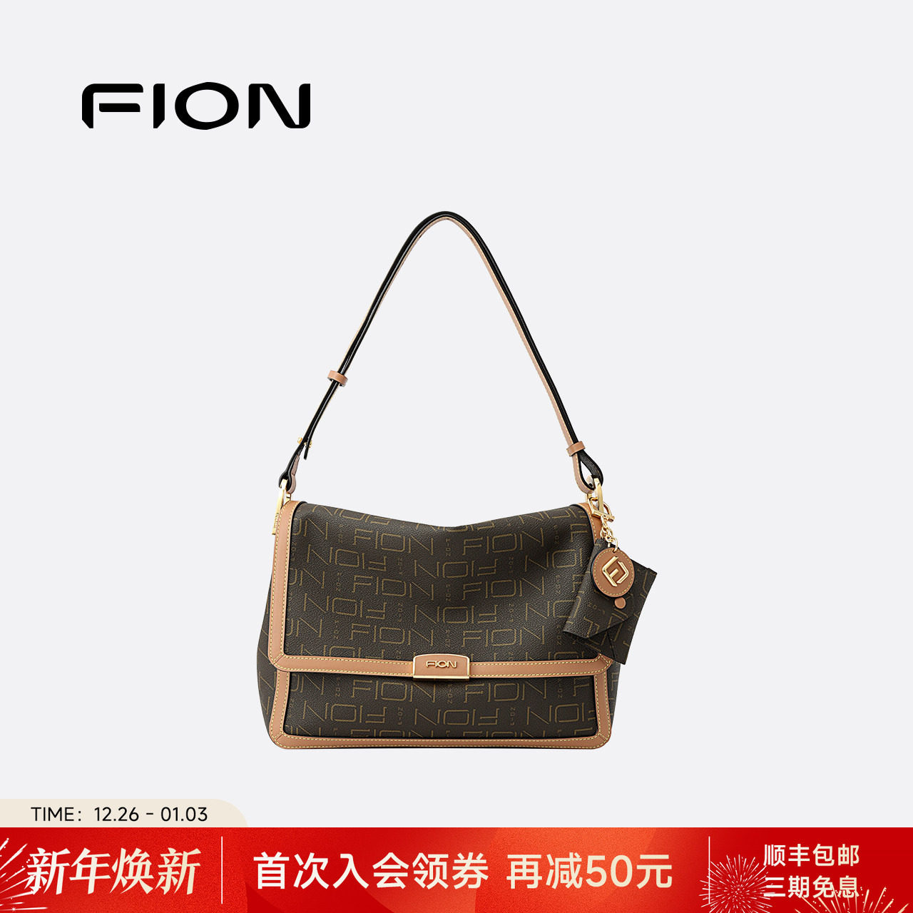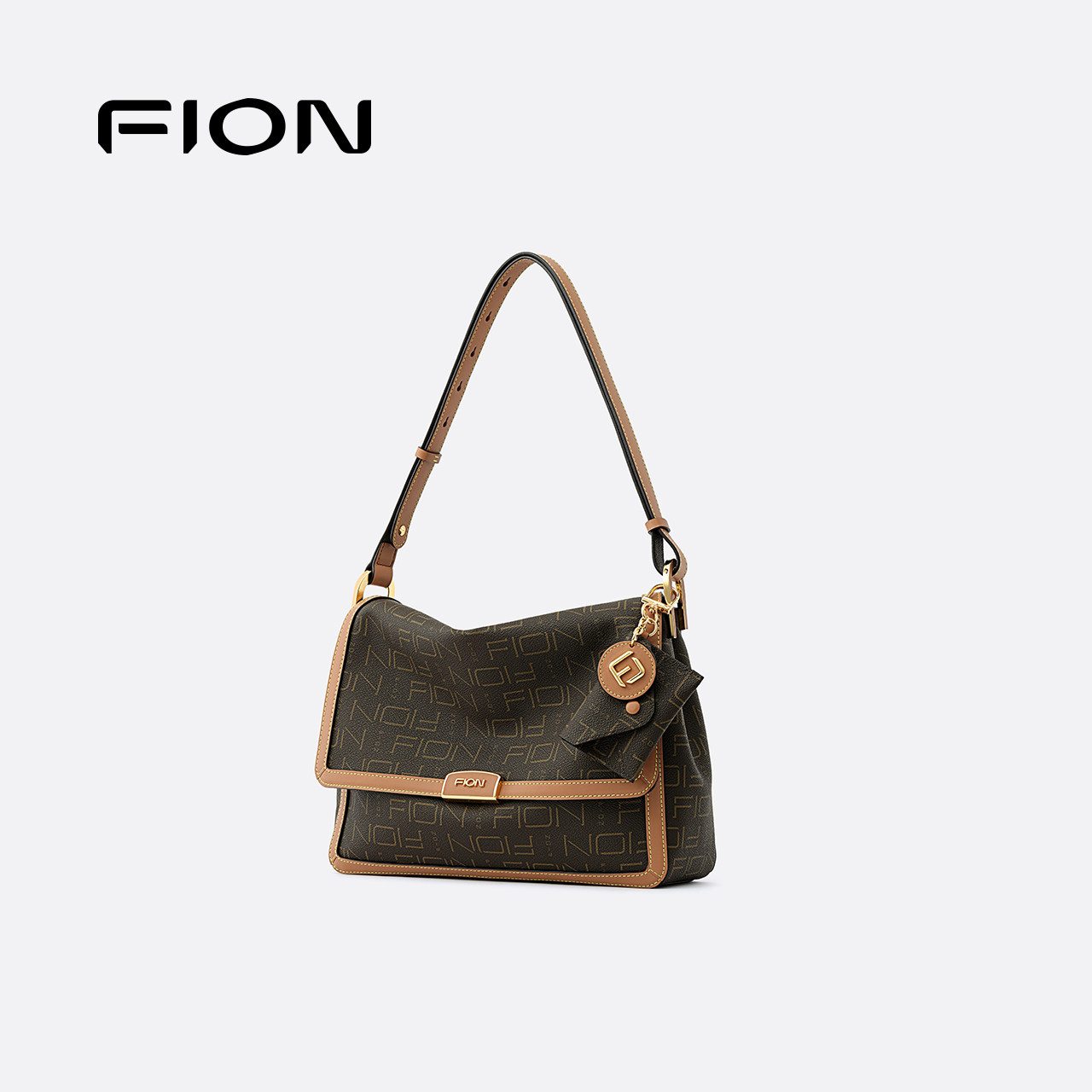 Fion/菲安妮女包复古老花小方包通勤大容量斜挎包通勤腋下单肩包
