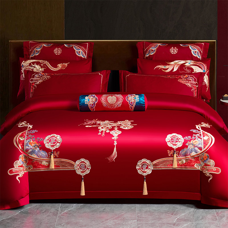 SIDANDA140支进口匹马棉婚庆四件套轻奢刺绣红色全棉结婚四件套
