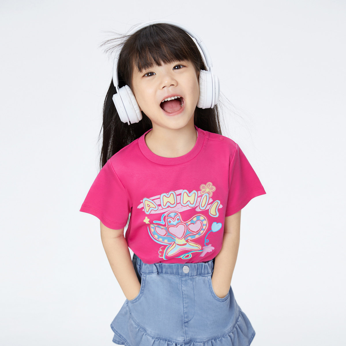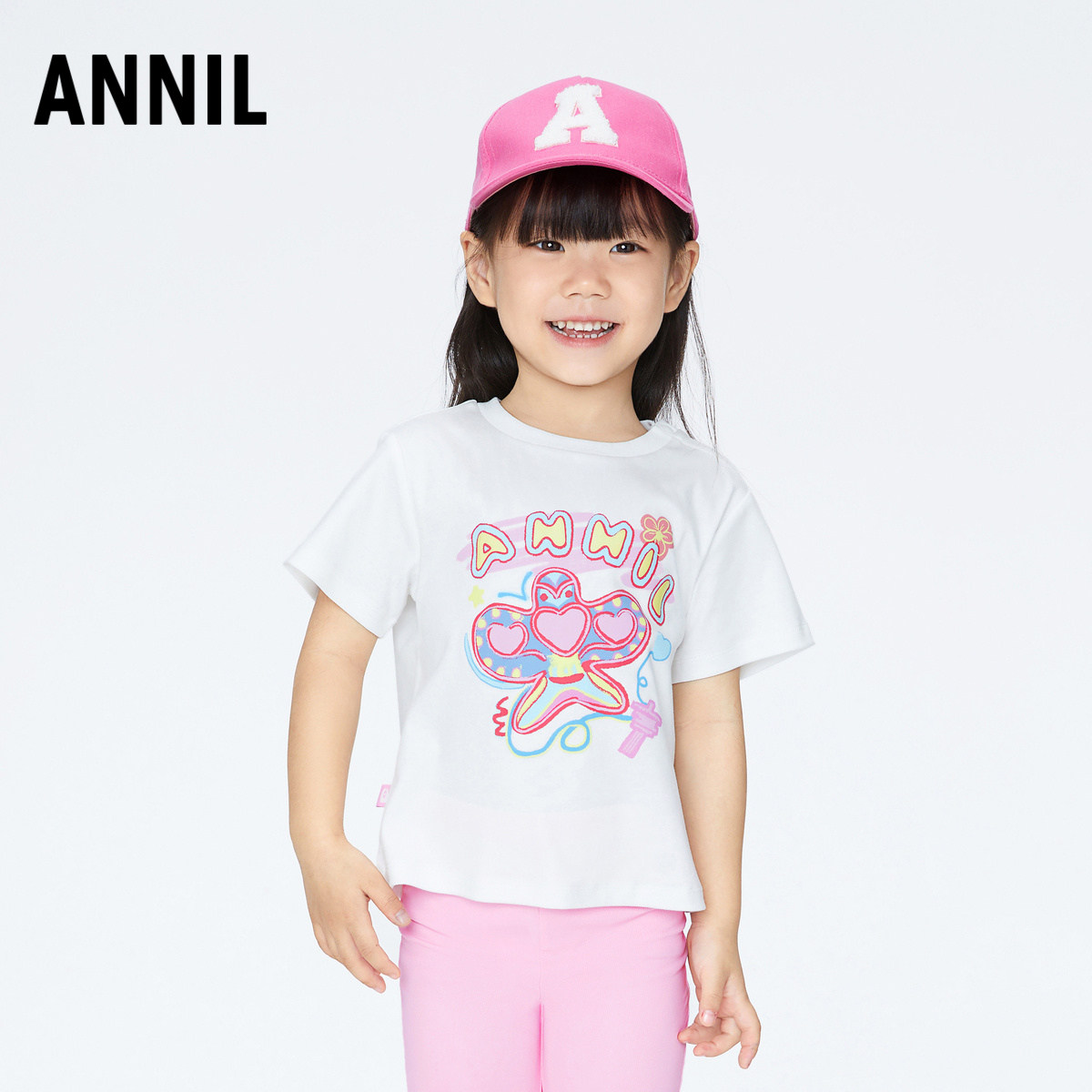 安奈儿童装女童圆领短袖T恤夏新款宝宝纯棉卡通动漫印花XG421696