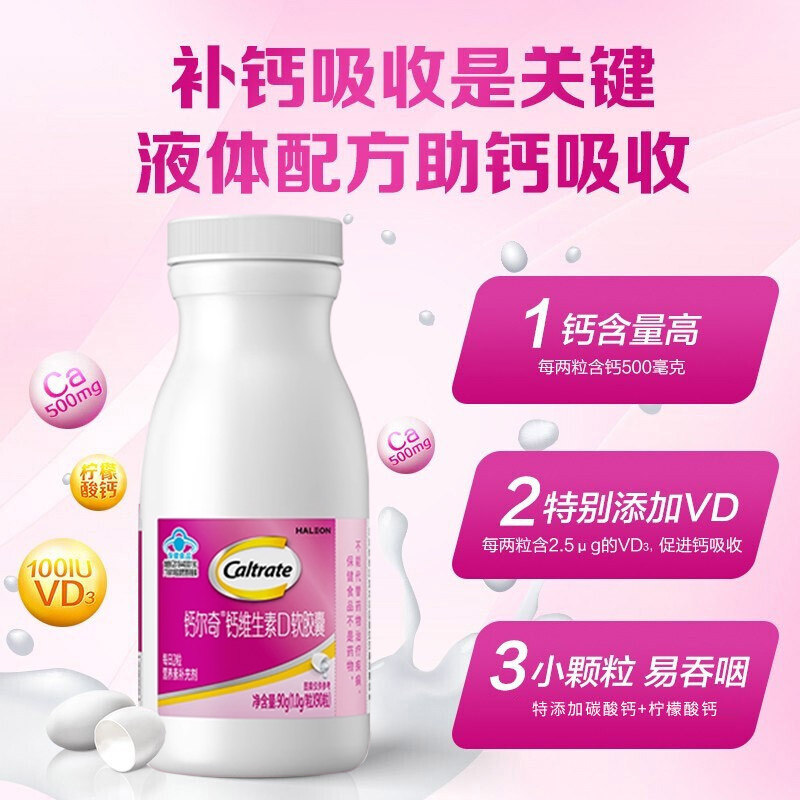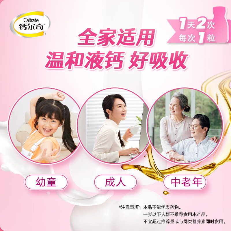 钙尔奇液体钙维生素D软胶囊补钙维生素90片*3瓶 柠檬酸钙片