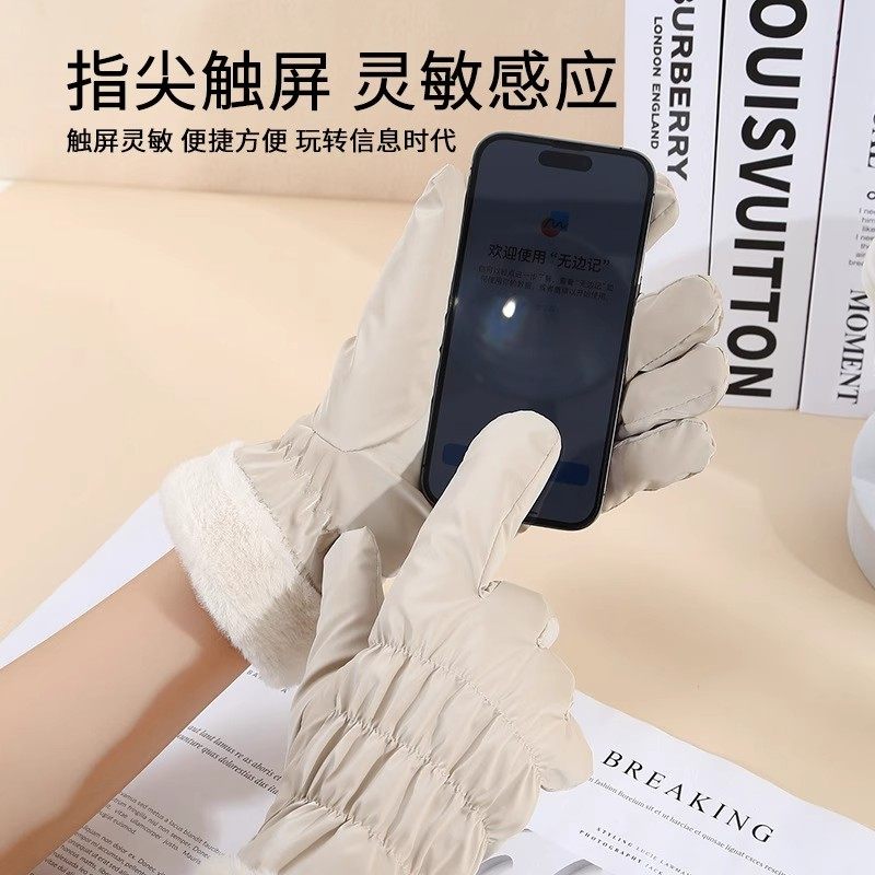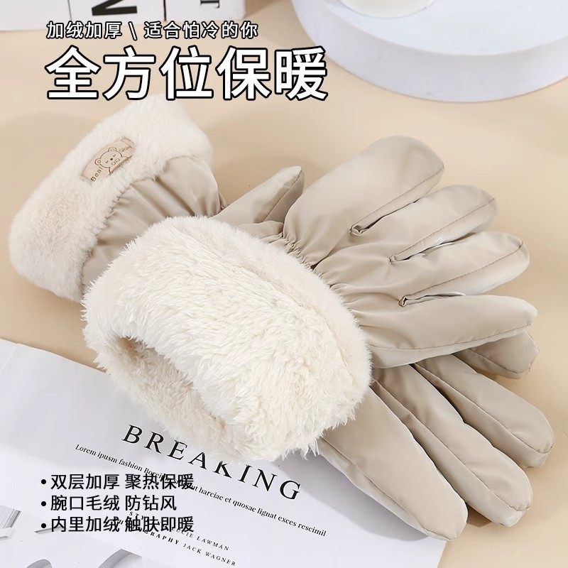 手套秋冬天女加绒保暖可爱德绒女士骑行防寒骑车防风触屏