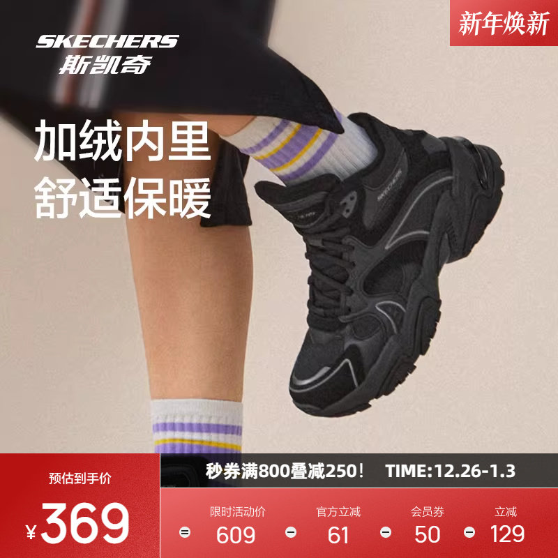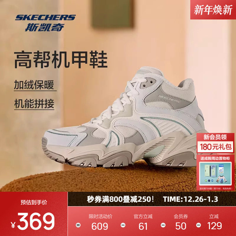 斯凯奇复古机甲鞋2025秋女子拼色高帮加绒老爹鞋时尚休闲运动鞋