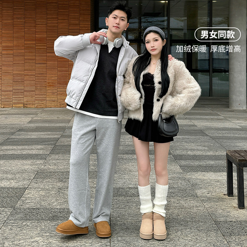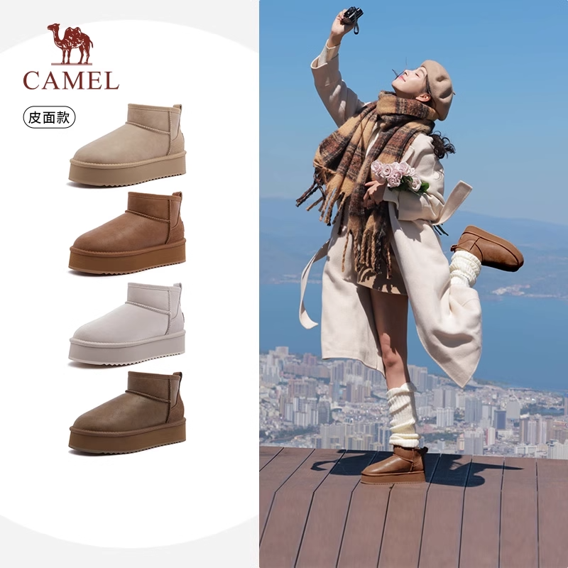 骆驼雪地靴情侣款2025冬季加绒保暖东北厚底增高棉鞋防滑防水棉靴
