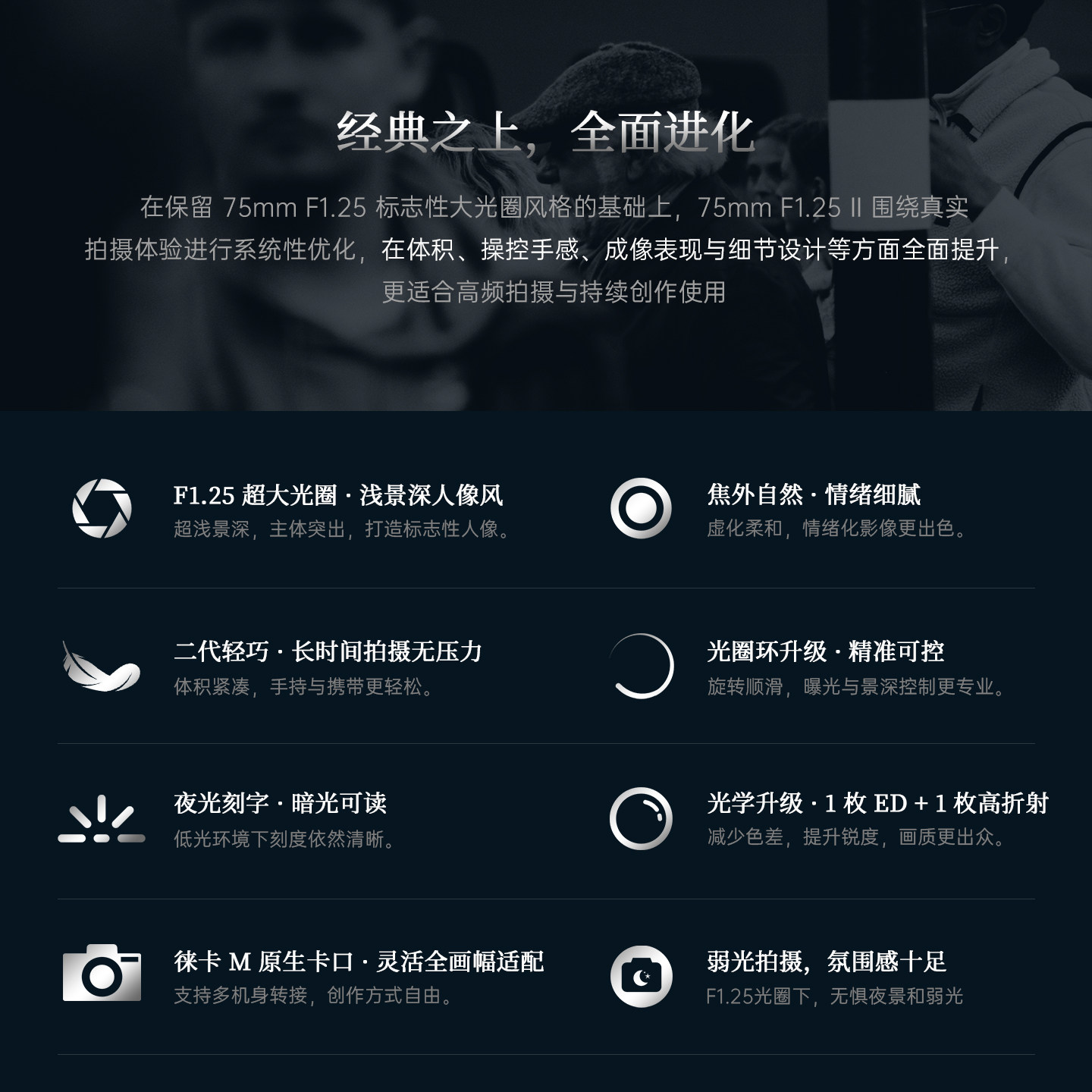 七工匠75mmF1.25大光圈人像镜头适用徕卡M口福伦达转E口尼康Z佳能