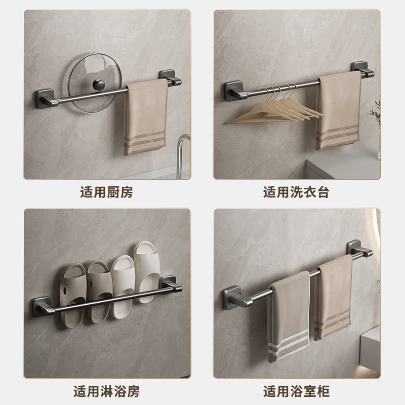 吸盘毛巾架卫生间免打孔浴室伸缩毛巾杆置物架洗手间浴巾收纳挂架