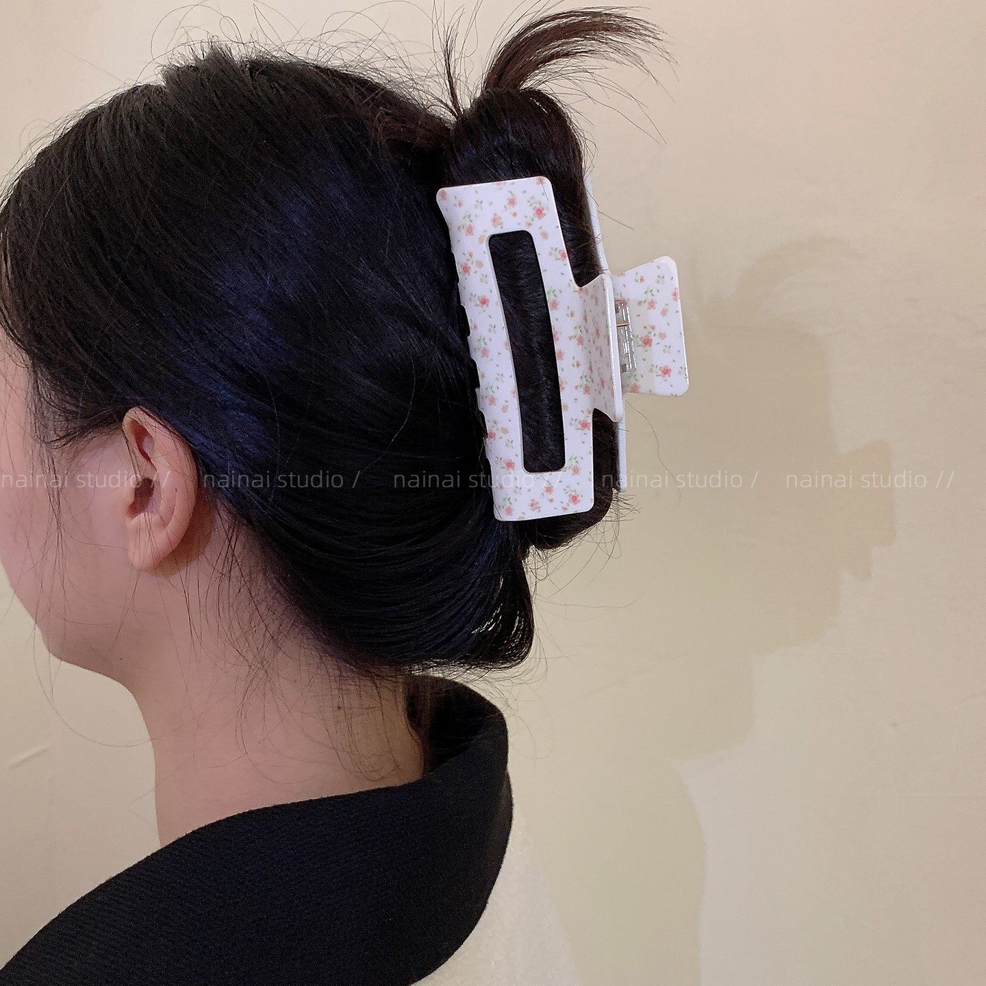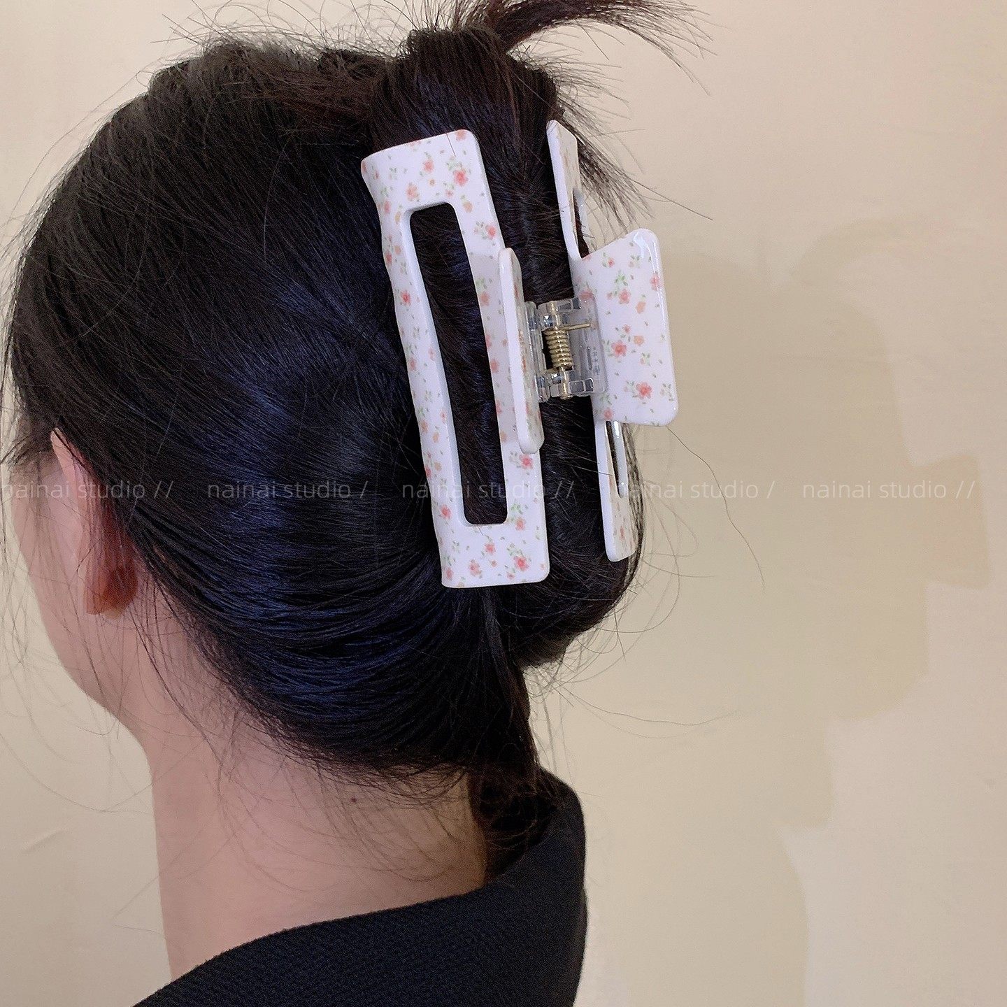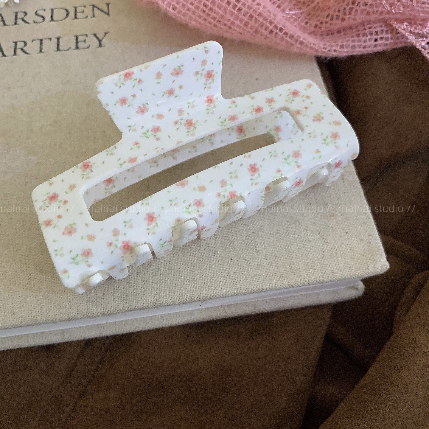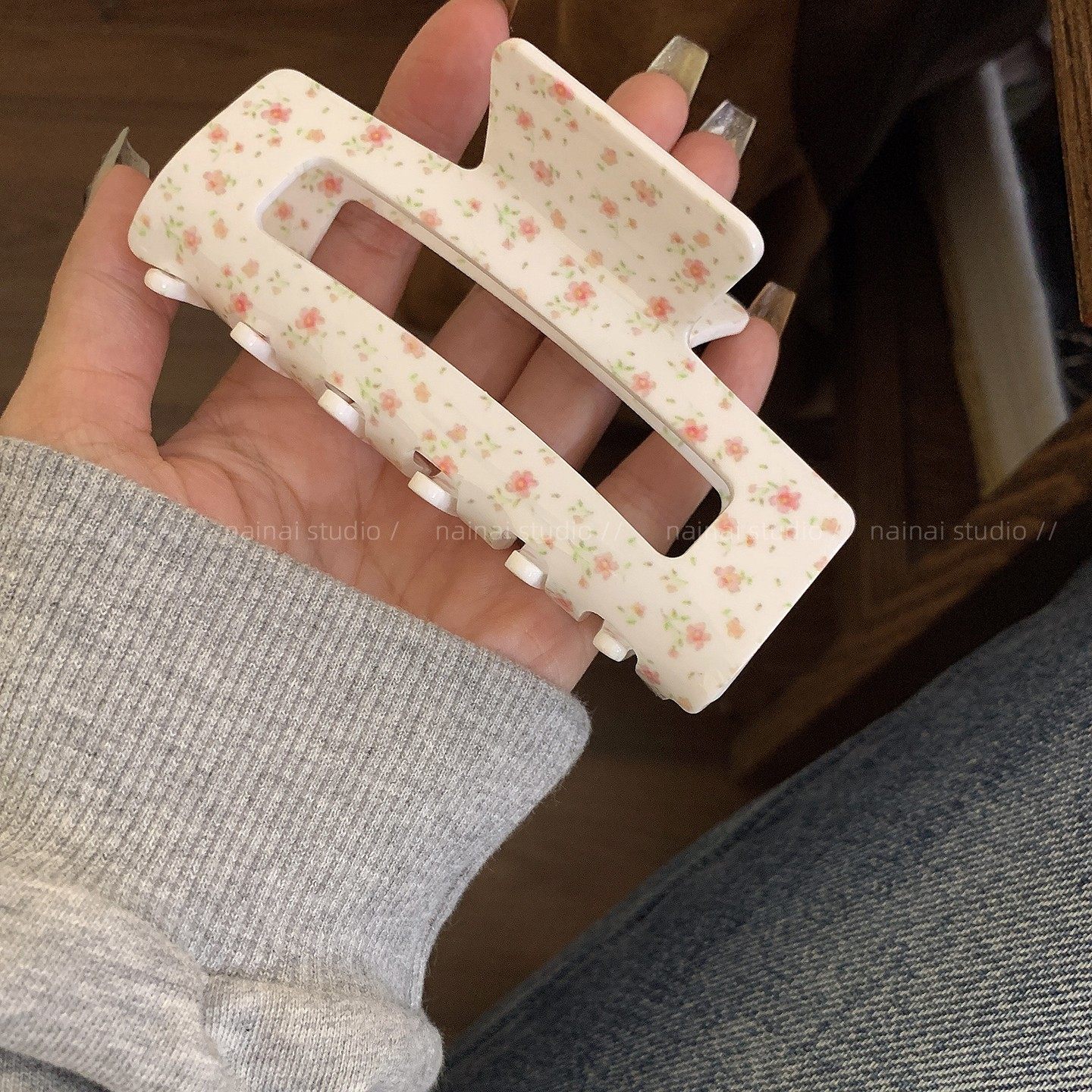 小碎花抓夹~小清新甜美粉色花朵后脑勺盘发鲨鱼夹大号发夹子头饰A