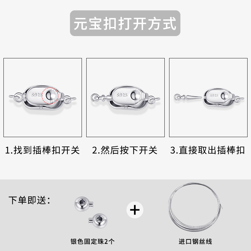 S925银元宝扣珍珠项链手链吊坠连接扣串珠DIY配件插棒扣头真金