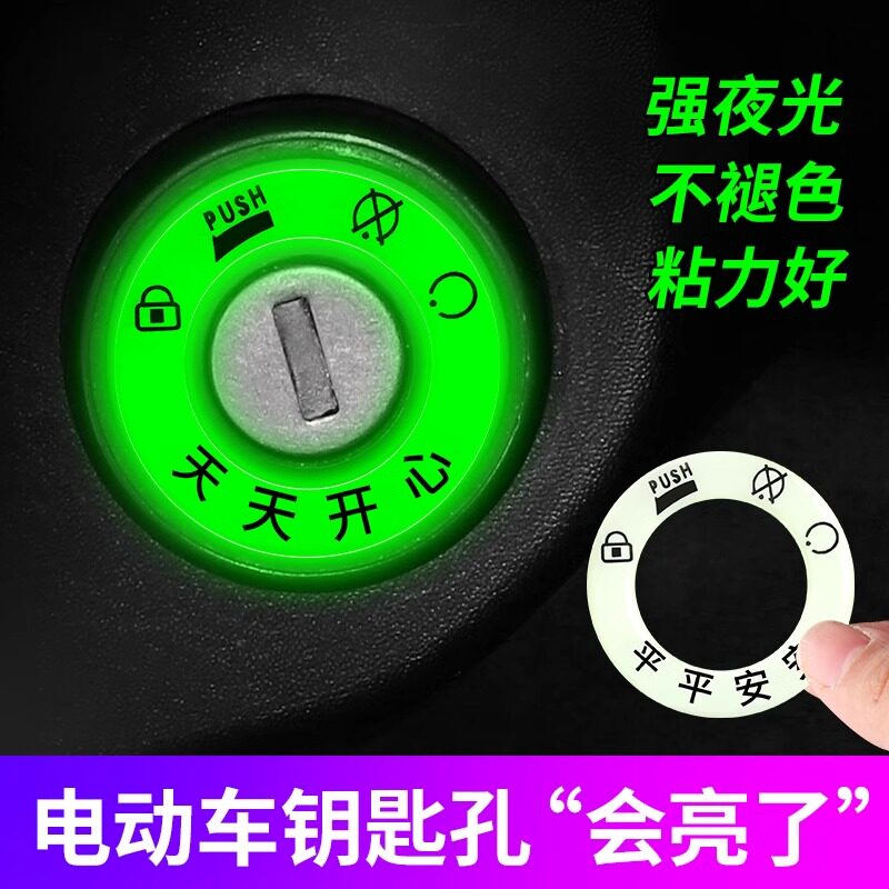 电动车夜光钥匙圈钥匙孔发光贴个性电门荧光圈摩托机车装饰品车身