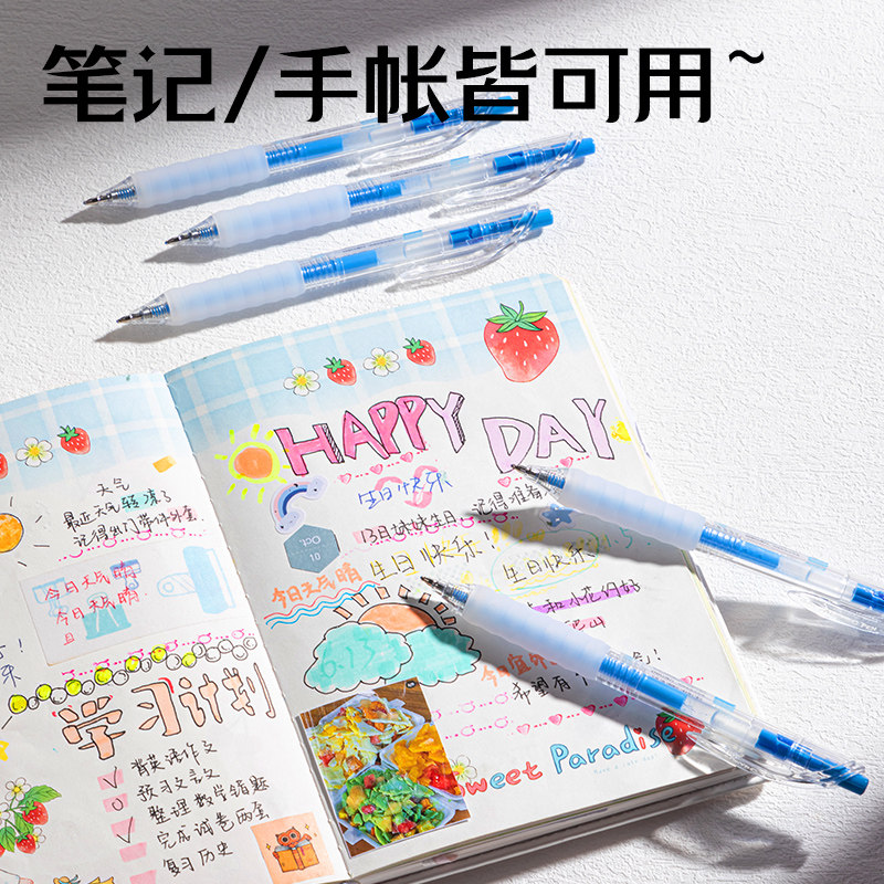晴耕雨读刷题笔专用高颜值速干按动中性笔ins黑笔圆珠笔ST笔学生用考试笔顺滑0.5笔芯黑色水性签字笔水笔碳素