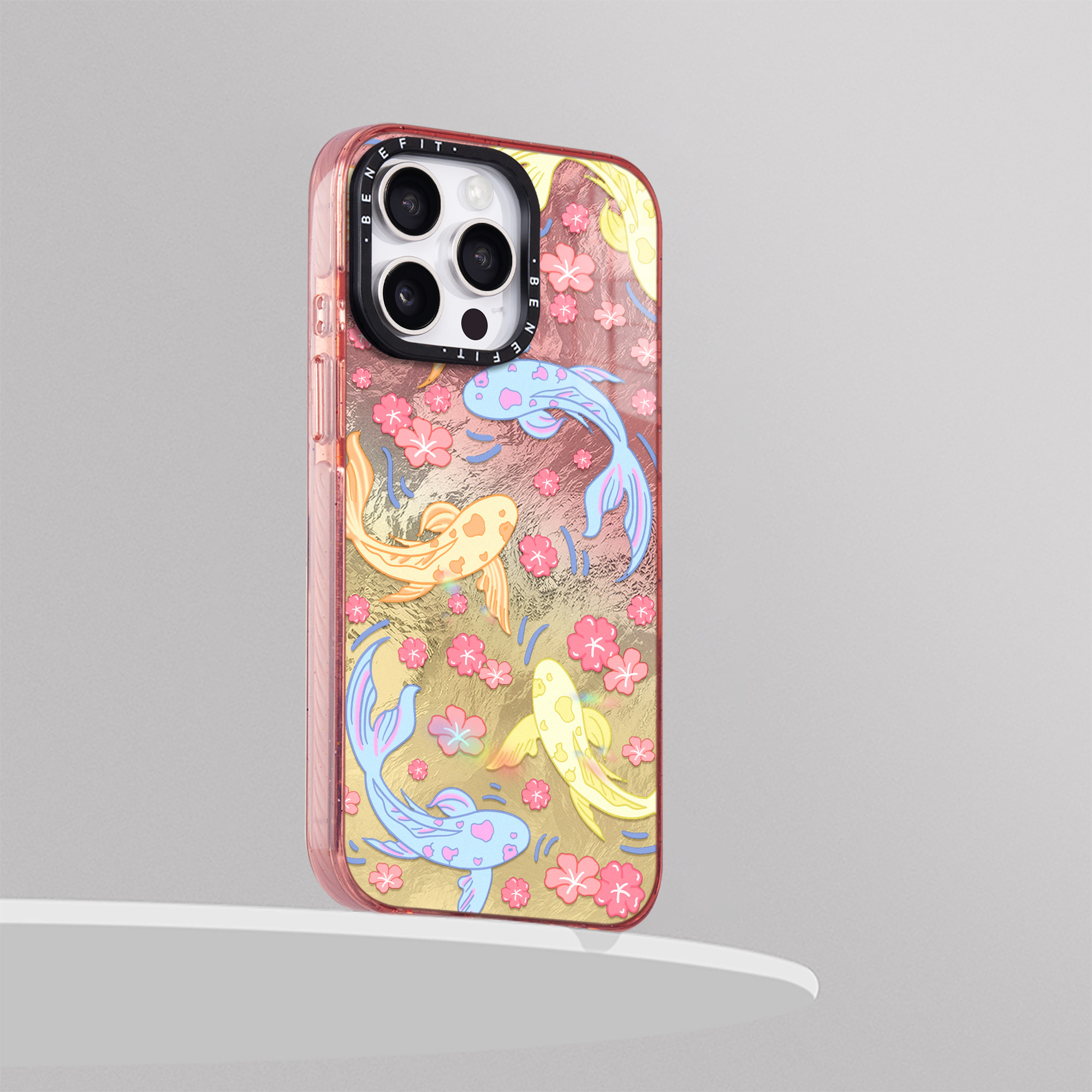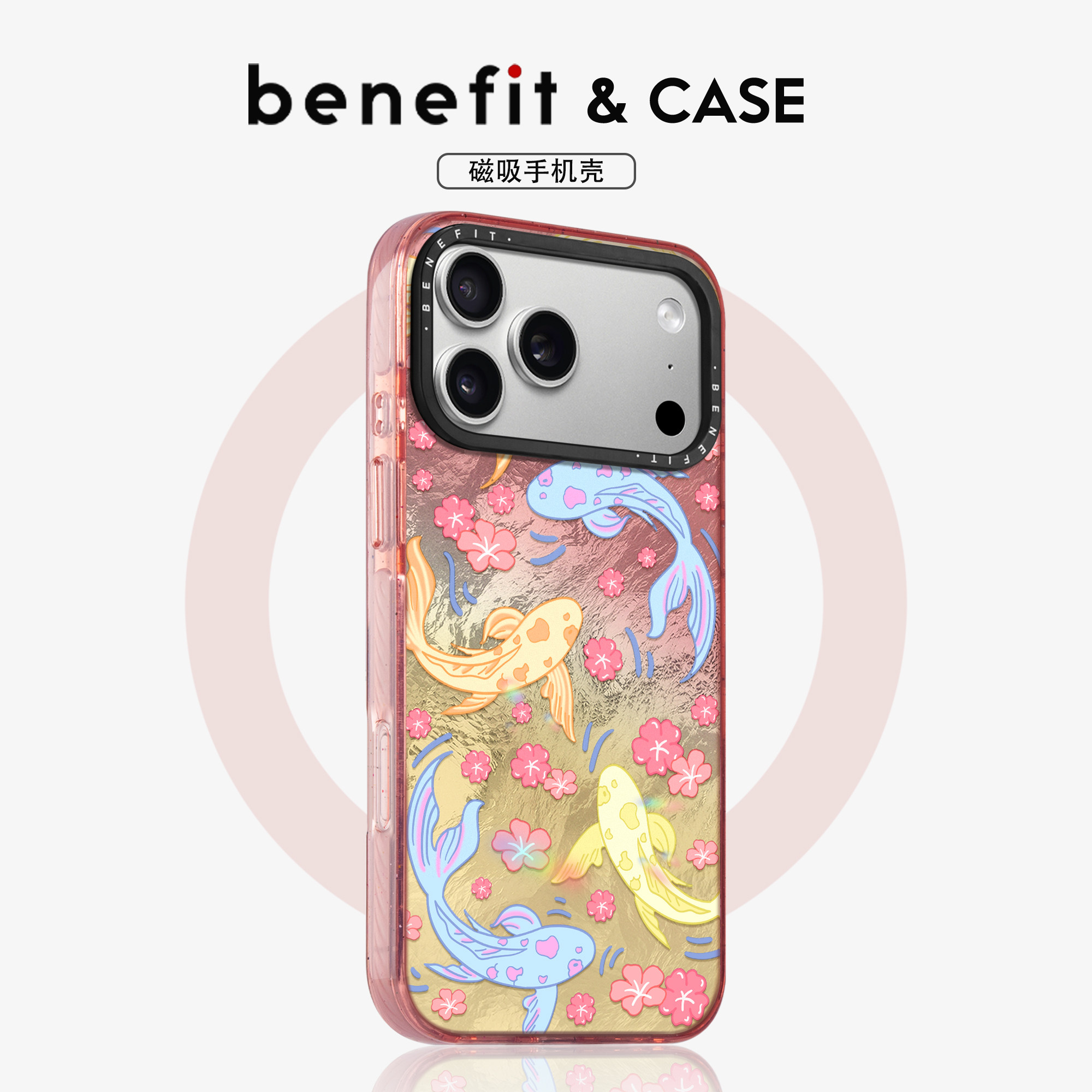 benefit红色花朵好运锦鲤17适用于iphone16promax苹果15PRO晶盾磁吸手机壳13新款14套12冰川纹防摔彩色边框
