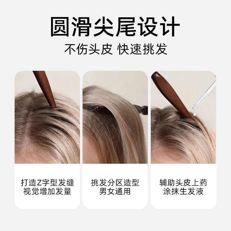 猪鬃毛蓬松颅顶梳子遮发缝专用窄密齿三排打毛高盘美发造型尖尾梳