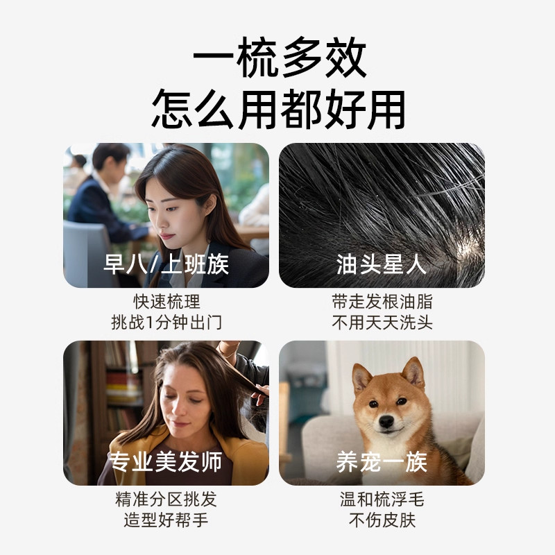 蓬松气垫梳长发梳套装组合气囊直发梳子学生宿舍女家用卷发按摩梳