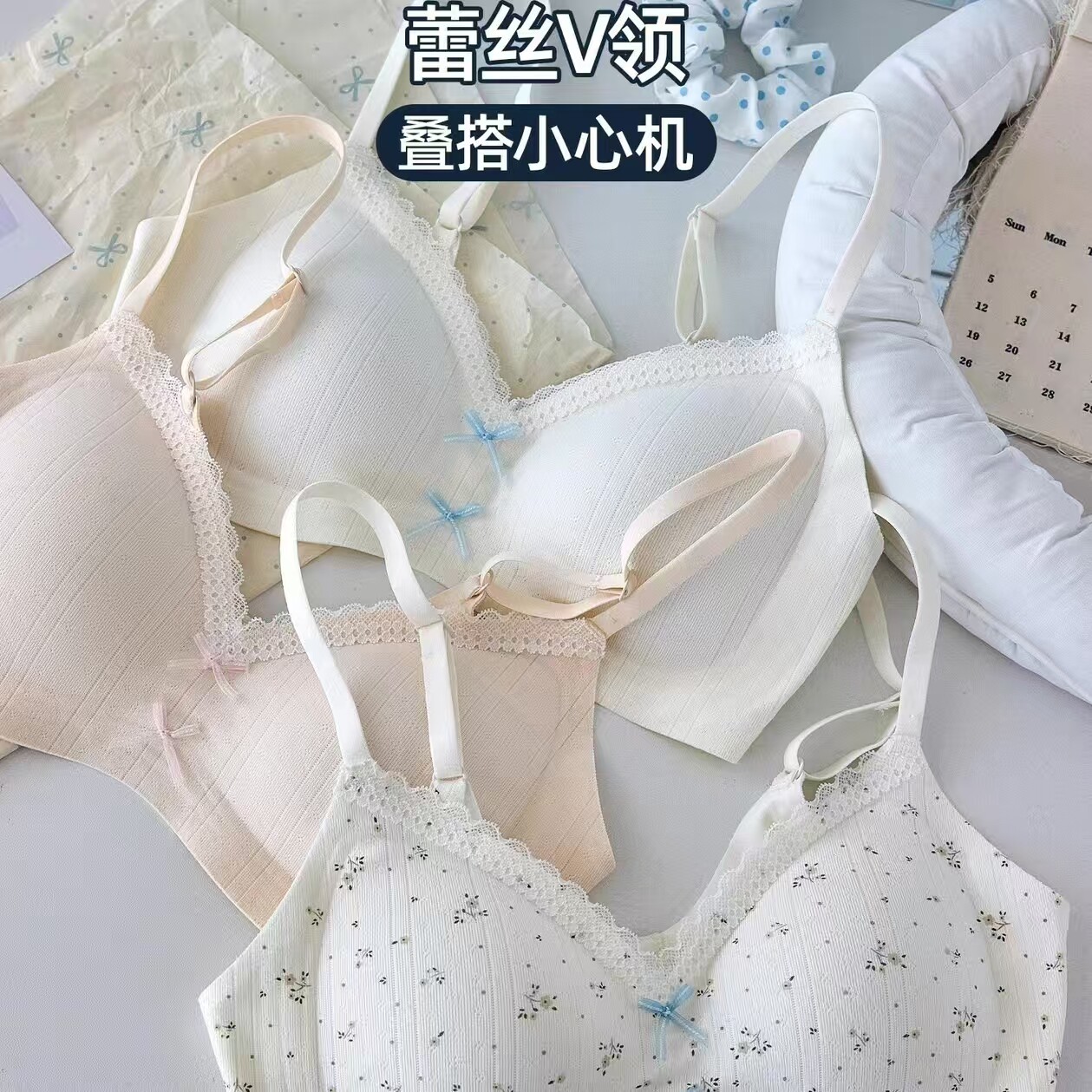 「YED多日系蕾丝无痕小胸聚拢无钢圈防下垂收副乳内衣女」固定