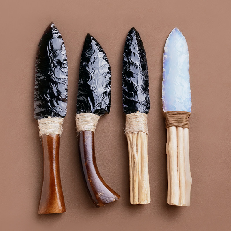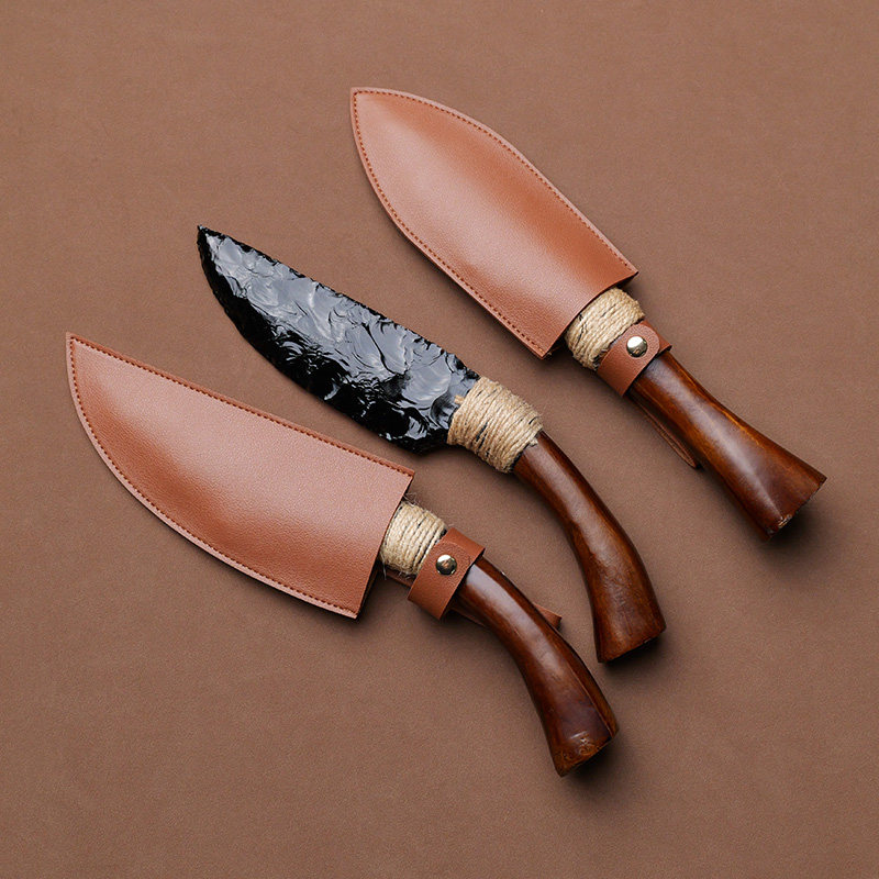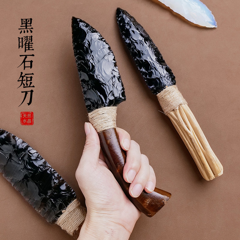 黑曜石刀原矿石刀石器天然水晶矿石标本摆件手工石头刀蛋白石海洋