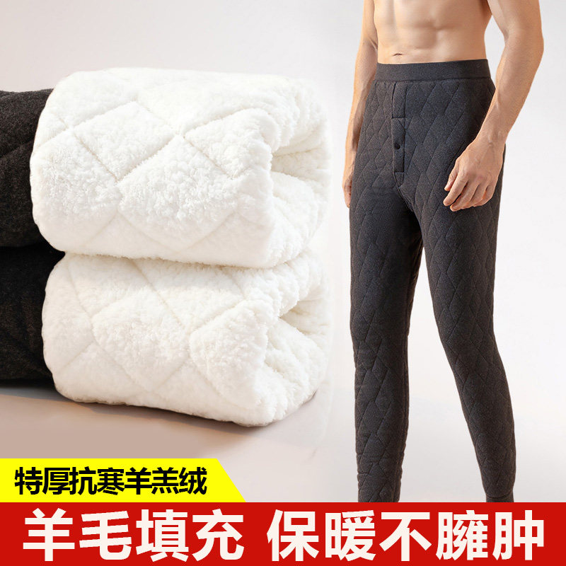 羊羔绒保暖裤男士冬季内穿加绒加厚打底裤东北特厚棉裤防寒抗寒