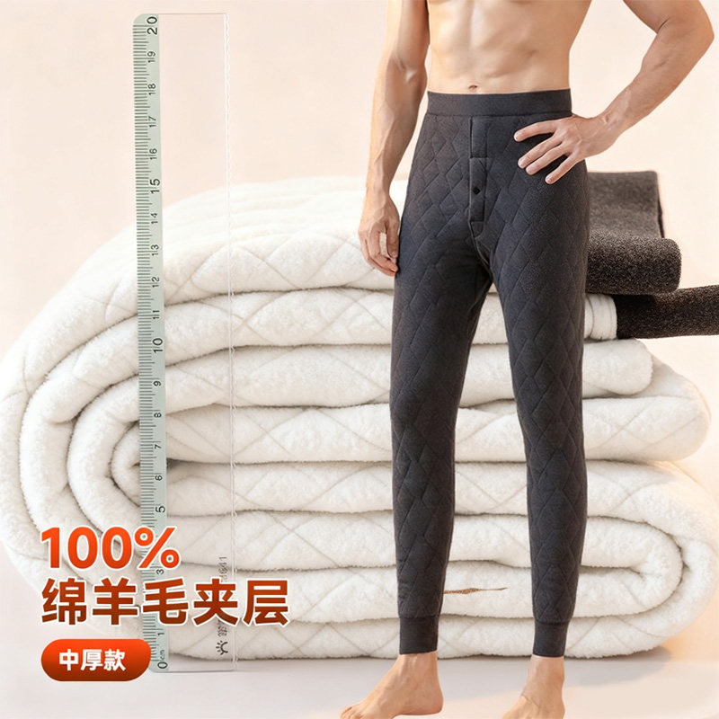 小暖羊松山棉店男士保暖打底裤高腰加厚加绒羊毛裤线裤秋裤棉裤冬