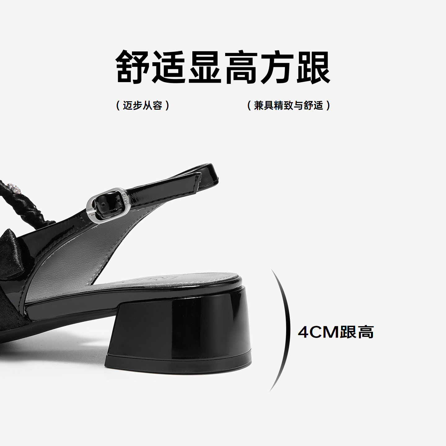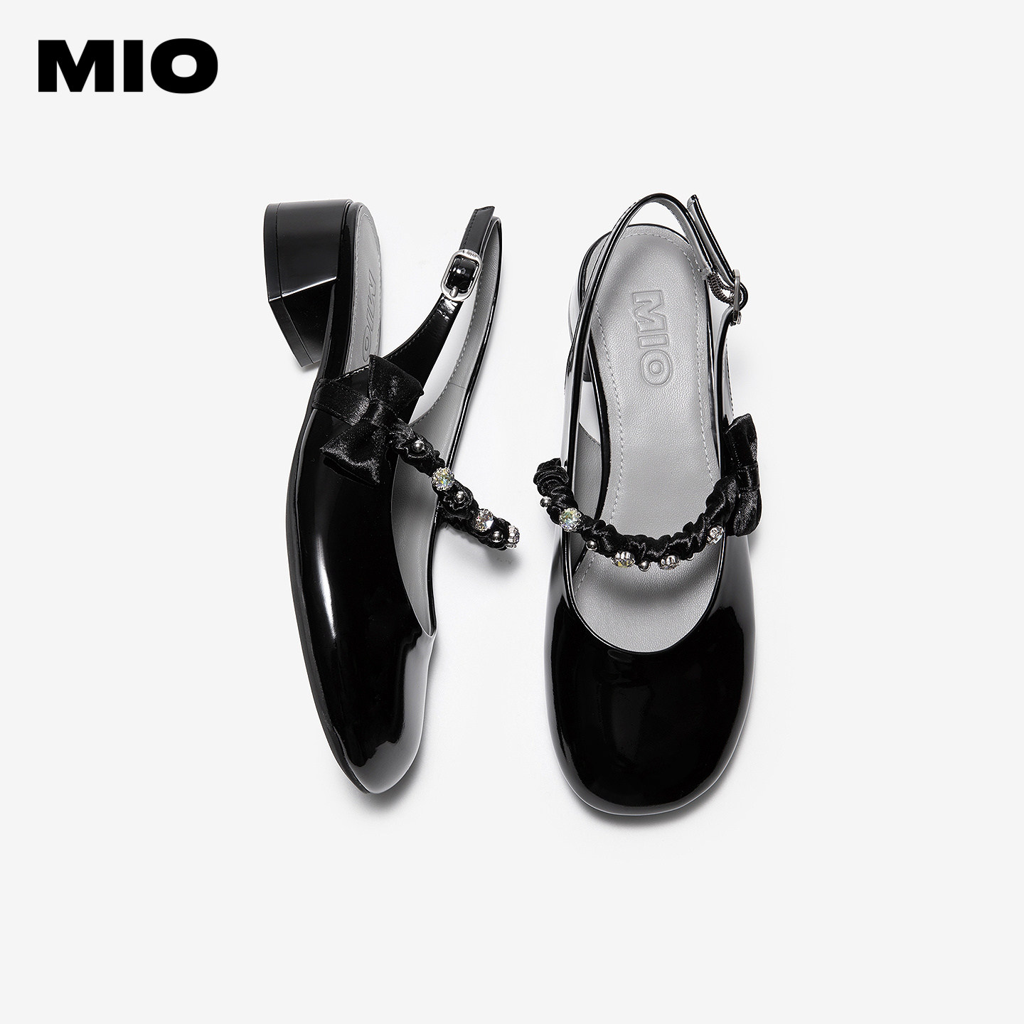 MIO米奥时装凉鞋女2026夏季新款蝴蝶结水钻纽带圆头后空中跟单鞋