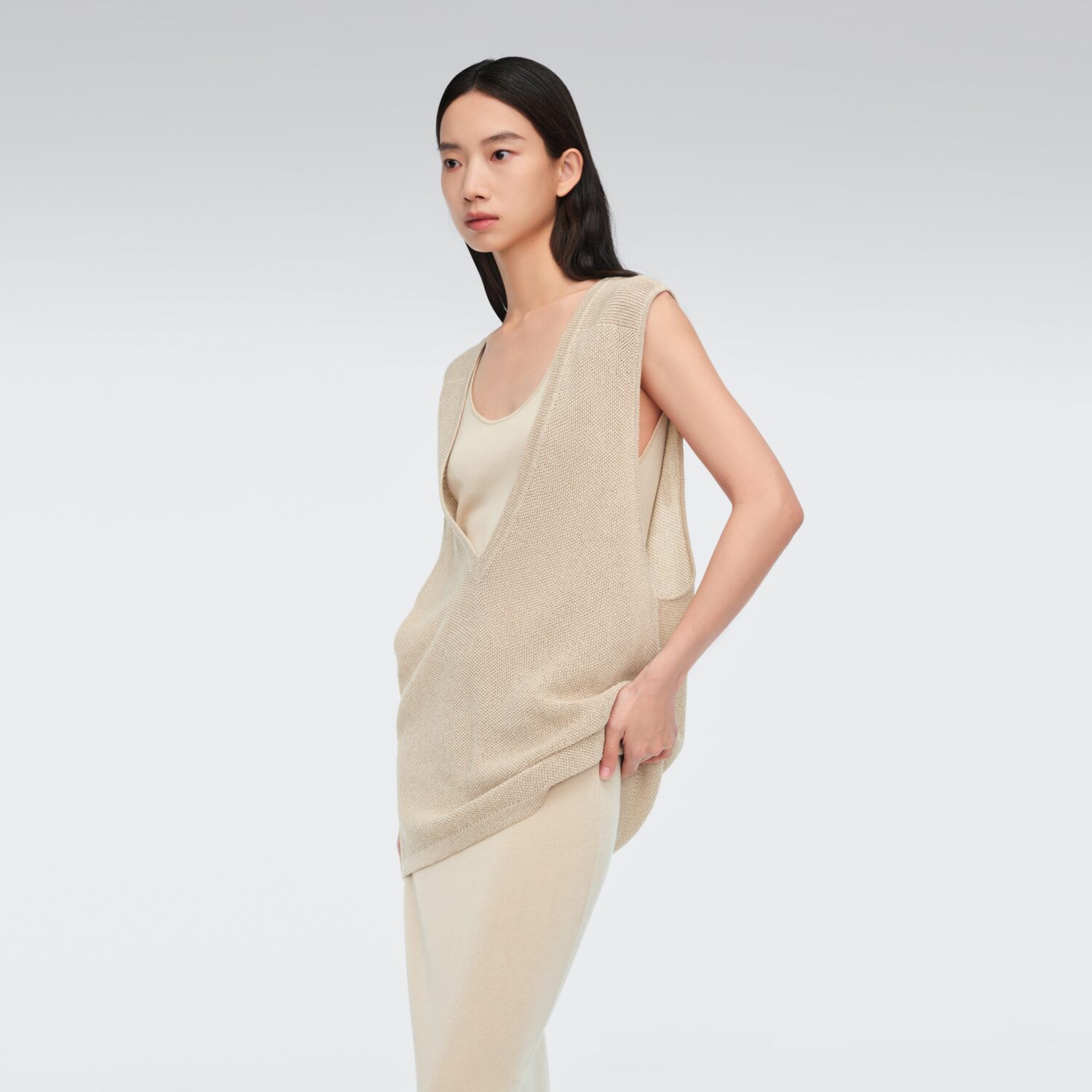无袖设计 V领罩衫 两件套设计