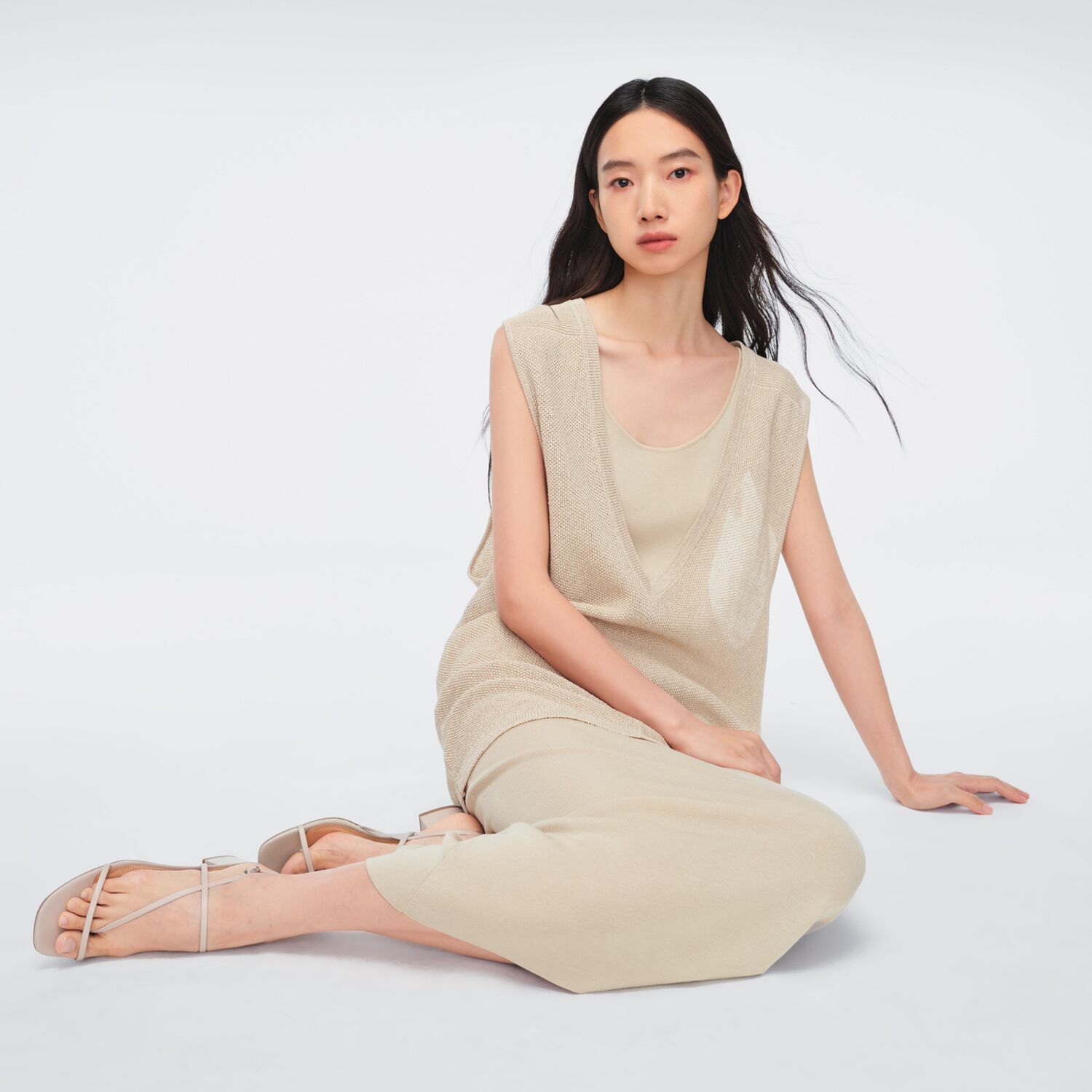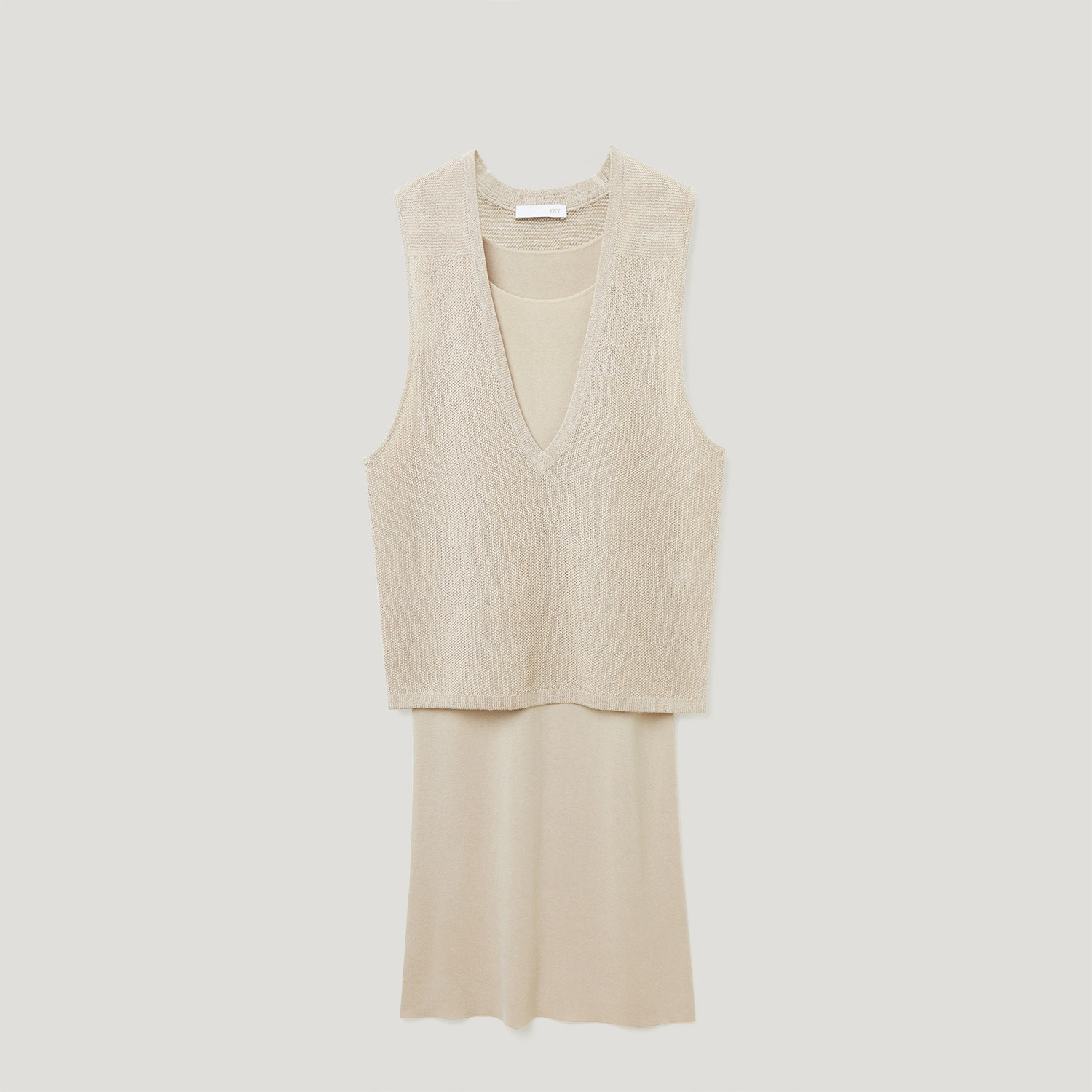 OVV春夏热卖女装简约无袖连衣裙加V领背心两件套
