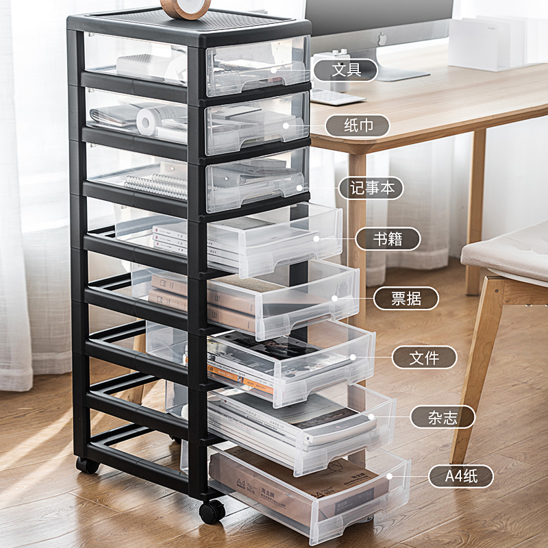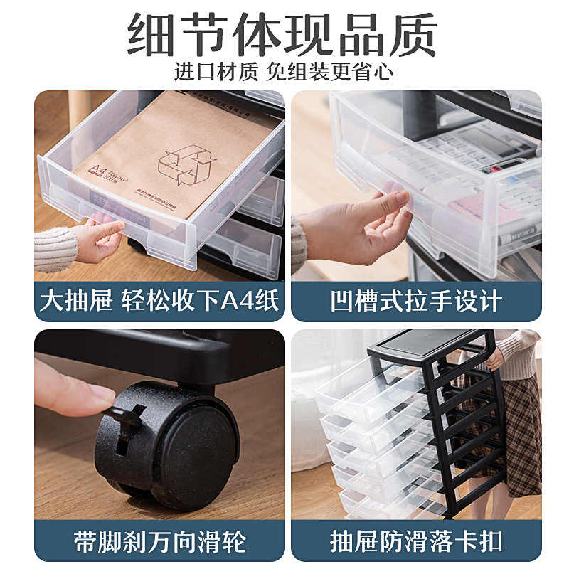 办公室桌下柜文件分类收纳柜子a4资料抽屉式多层移动整理柜小储物盒收纳车塑料资料柜大推车办公桌桌面文件柜