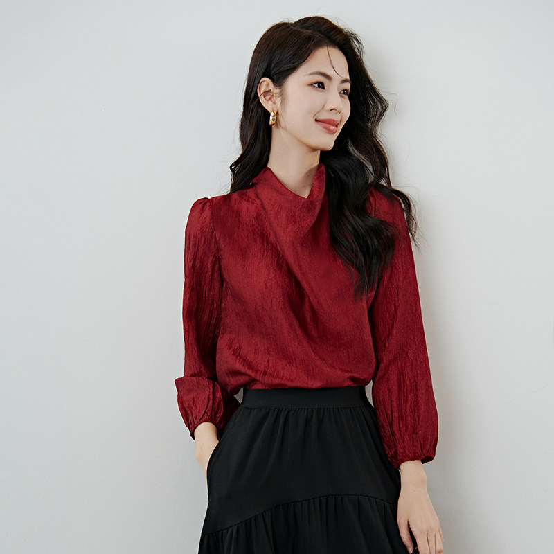 晚白2026年春新款复古港风荡领醋酸上衣丝光柔软气质显白衬衫女