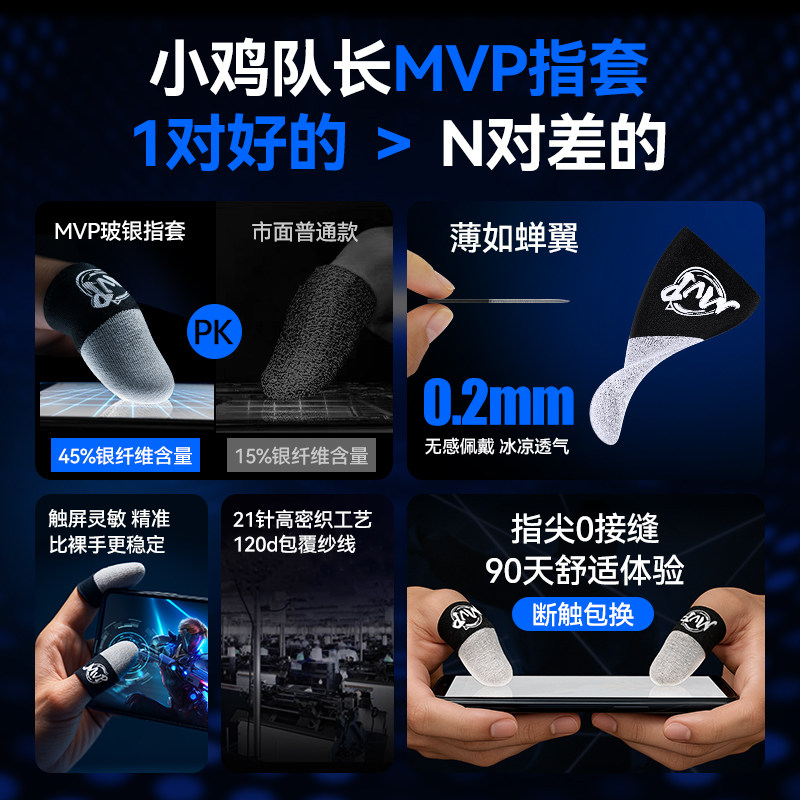 小鸡队长新款决战平安京手游MVP指套高灵敏防汗防滑上分神器王者荣耀英雄联盟LOL电竞游戏精英触屏银布拇指套