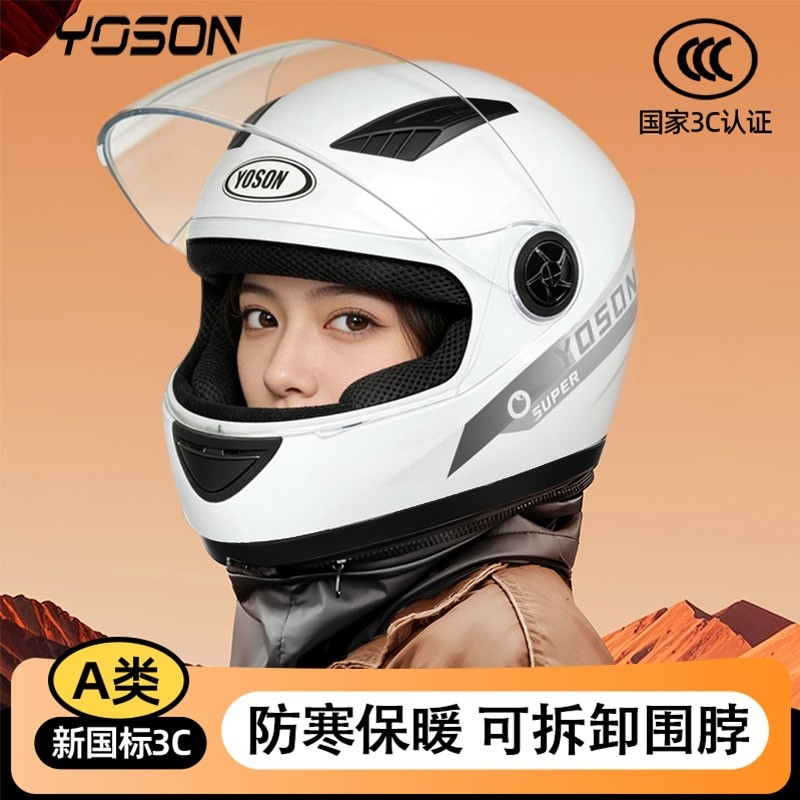 3C认证电动摩托车头盔男女四季通用盔秋冬保暖防雨防雾全盔安全帽