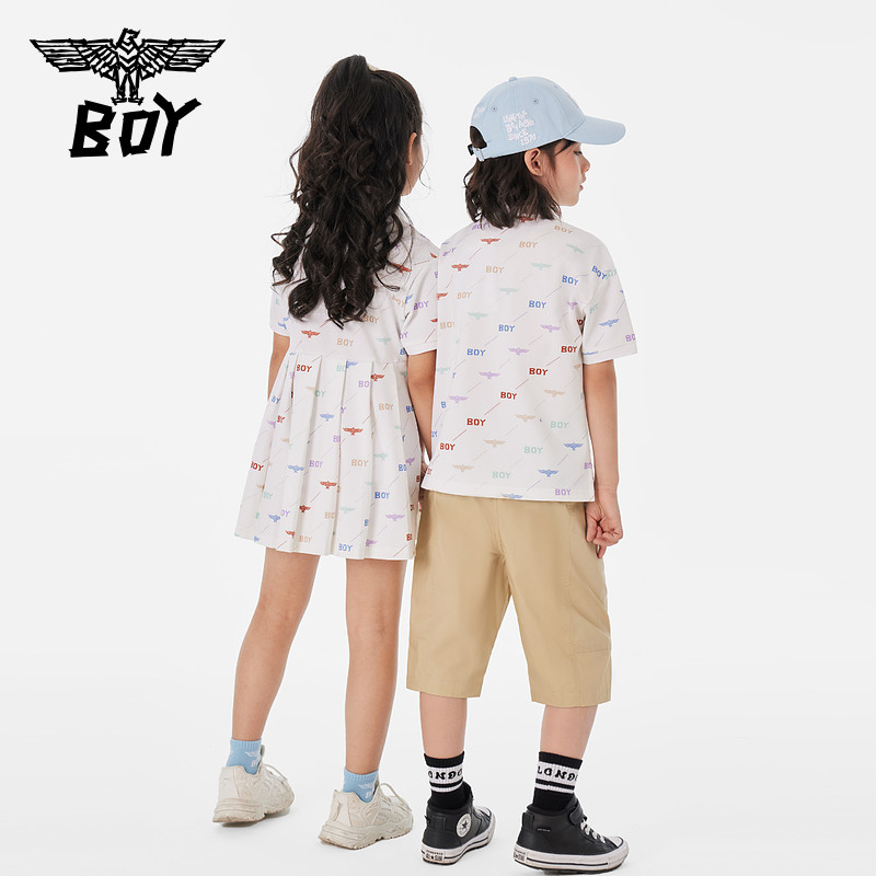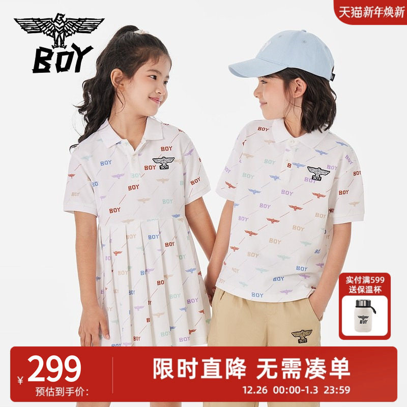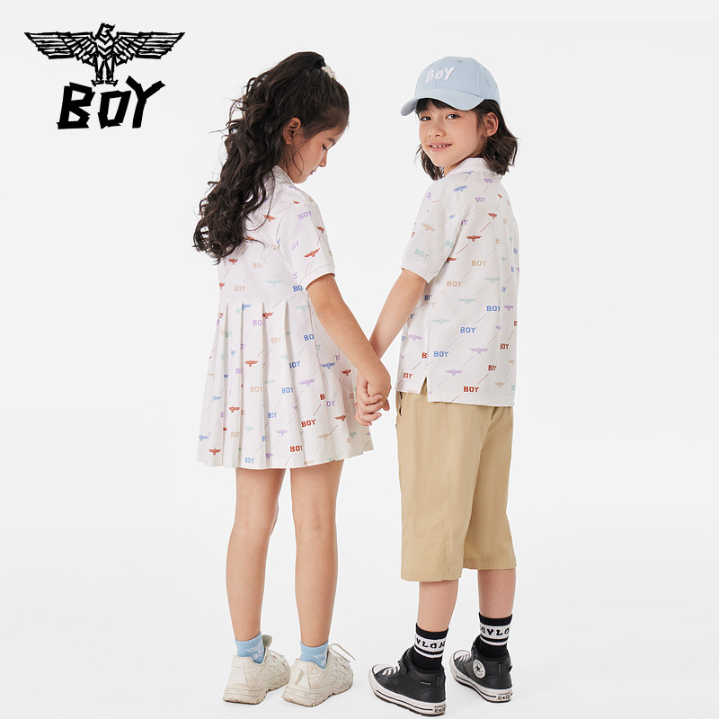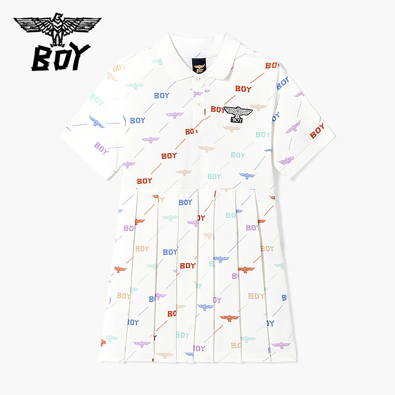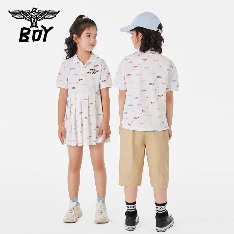 BOY童装 女童夏季POLO短袖裙彩色老花运动洋气百褶连衣裙