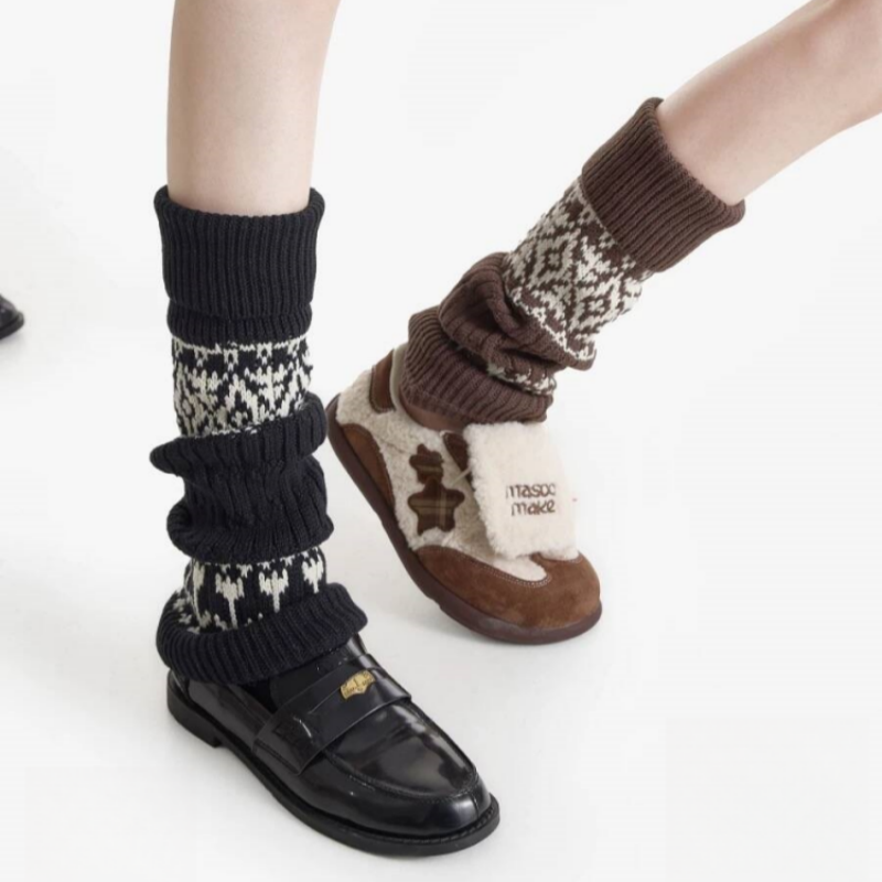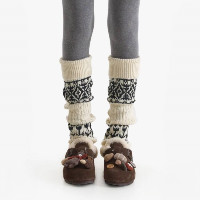 费尔岛长筒袜套女加厚保暖圣诞节袜子女腿套配打底裤y2k堆堆袜套