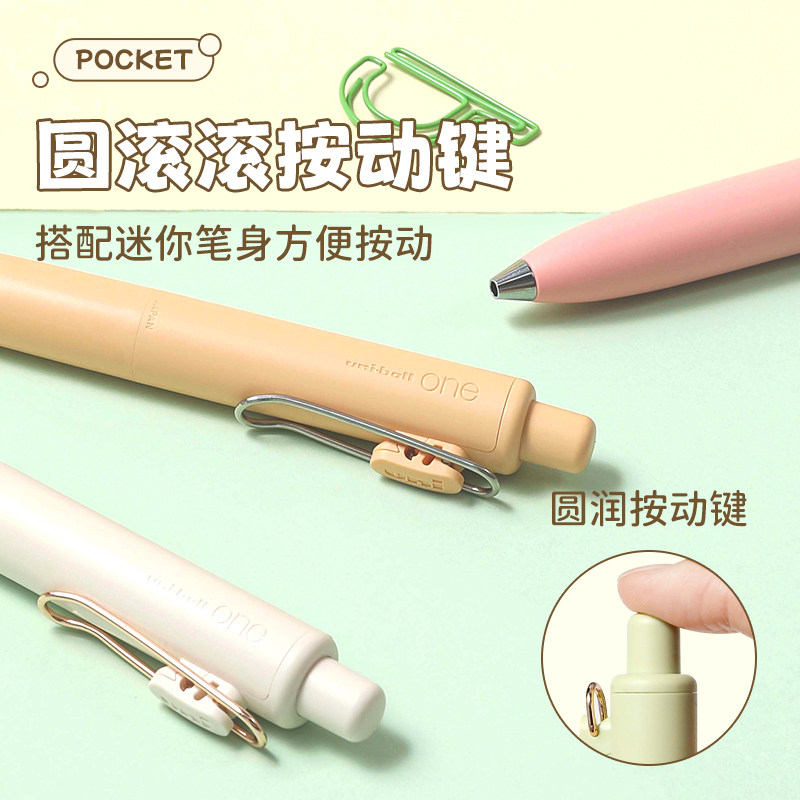 日本uni三菱小胖笔小浓芯胖萝卜迷你口袋笔下午茶马卡龙秋冬按动中性笔高颜值黑色笔0.5mm大容量可换芯
