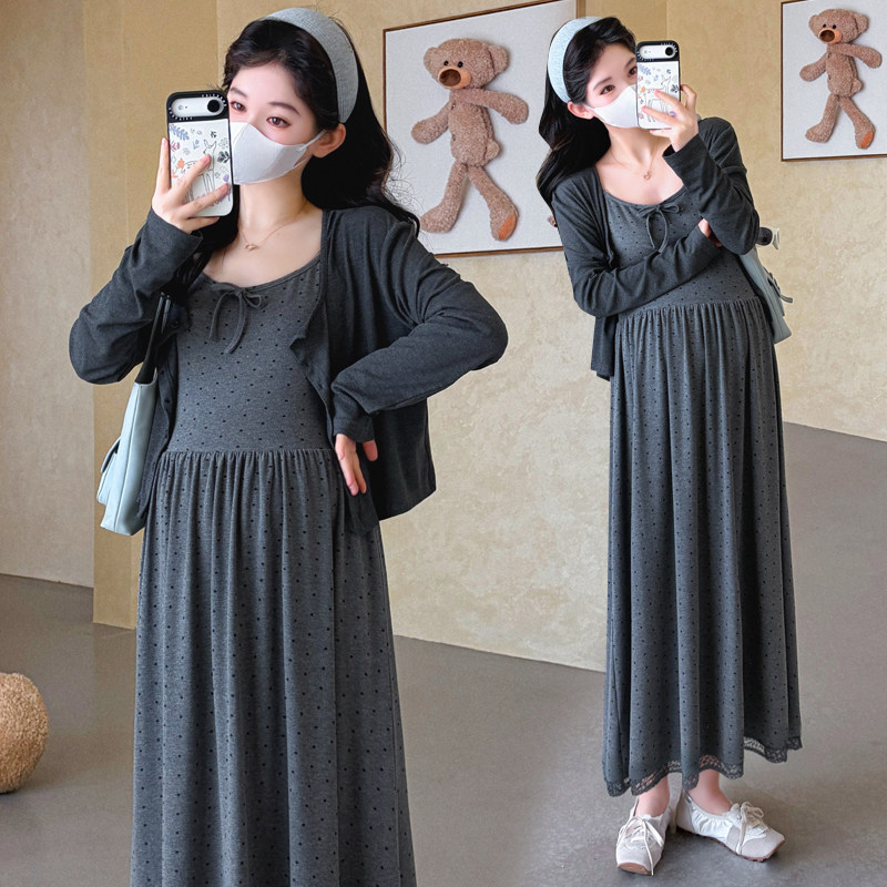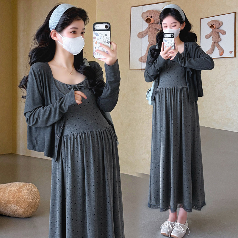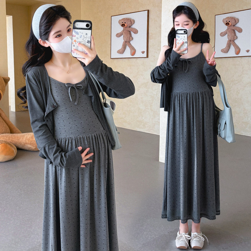婧麒孕妇套装早春洋气遮孕肚长袖宽松显瘦遮孕肚高品质