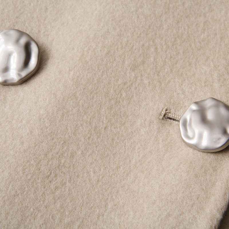 RUISHI芮时重磅驼绒桑蚕丝羊毛慵懒两穿领灰色毛呢大衣秋冬外套女