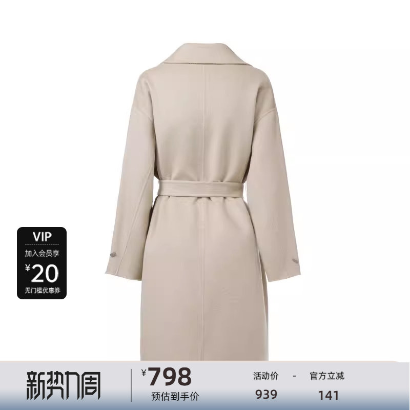 sdeer圣迪奥女装OL风翻领双排扣收腰双面呢大衣S24482607
