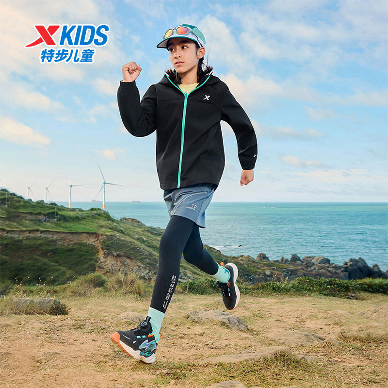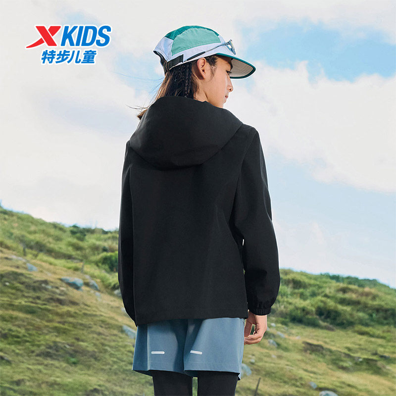 特步童装秋季款男童女童中大童运动休闲外套防风舒适百搭双层风衣