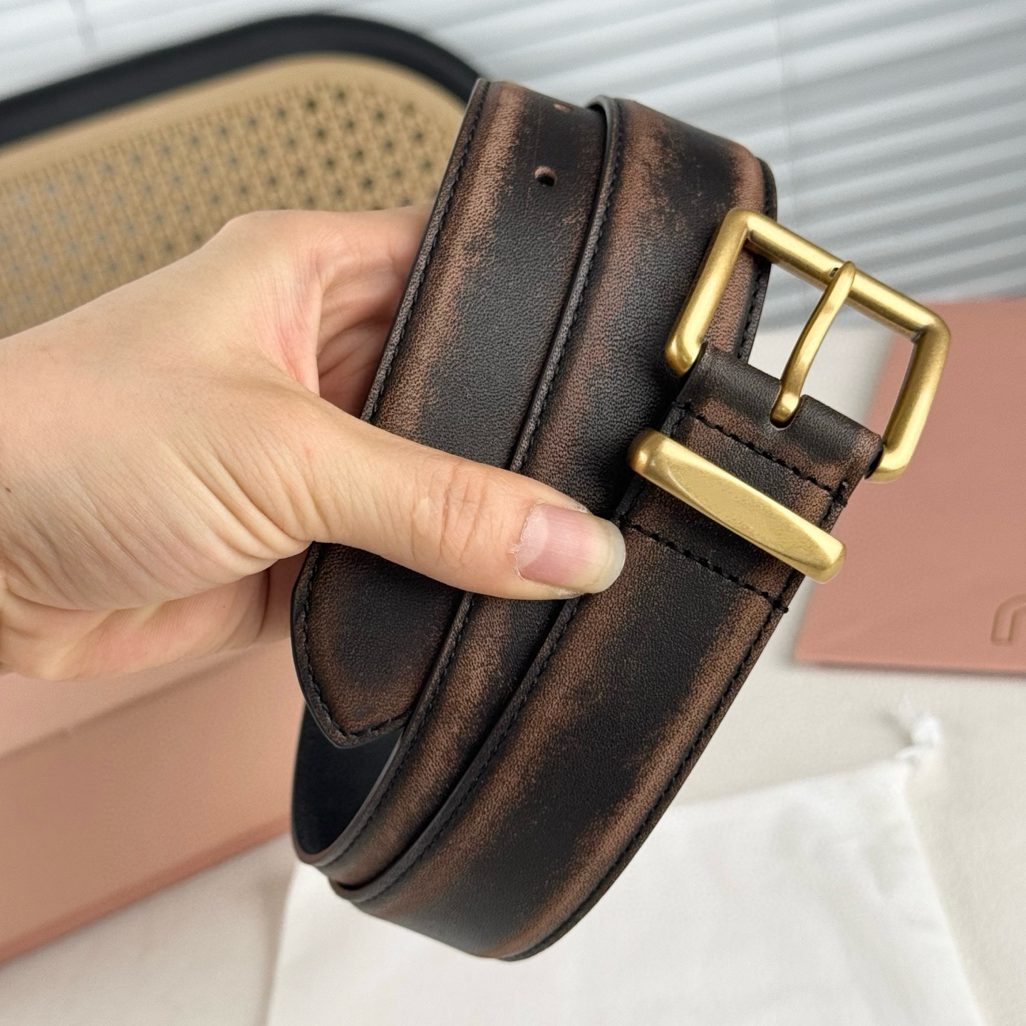 日本MUI新款休闲男女简约百搭皮带裤腰带棕色装饰学生潮流年轻人