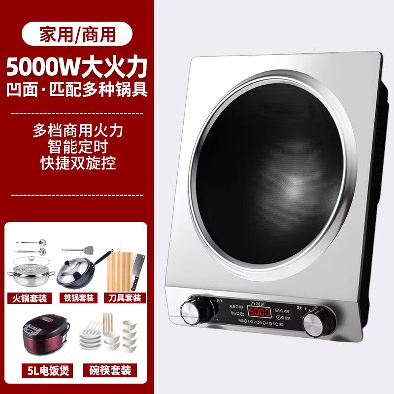 万利达凹面电磁炉家用5000W大功率猛火爆炒一体多功能炒菜锅火锅