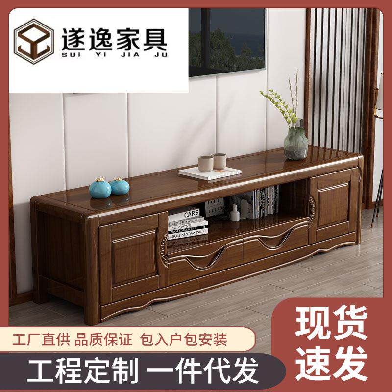 新中式实木1.8米电视柜家用客厅2.0米地柜卧室影视电视柜客厅家具