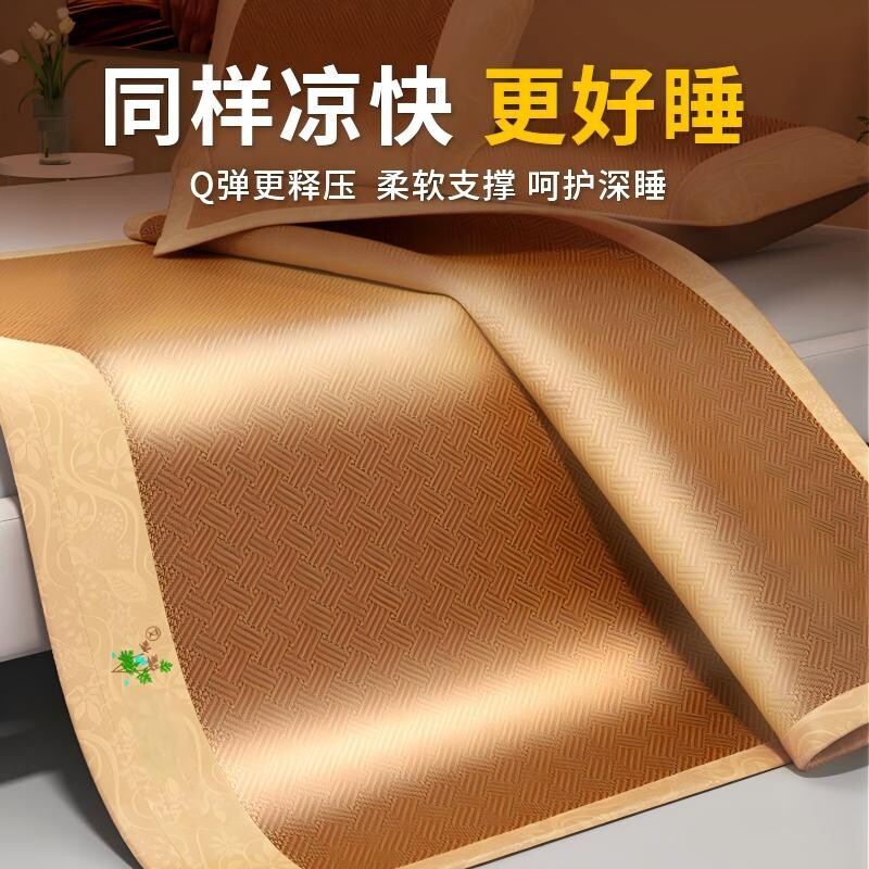 新款艾草夏季可折叠宿舍凉席藤席加厚双人席子竹席单人学生冰丝夏