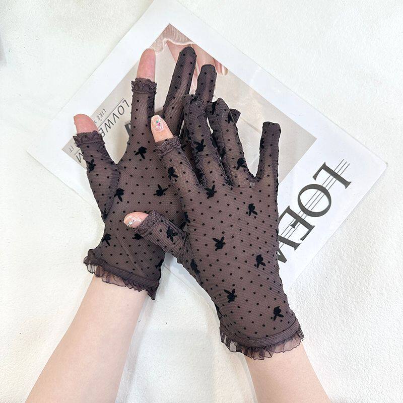 防晒蕾丝漏指手套优雅黑色二指手袜春夏季女薄款透气防紫外线