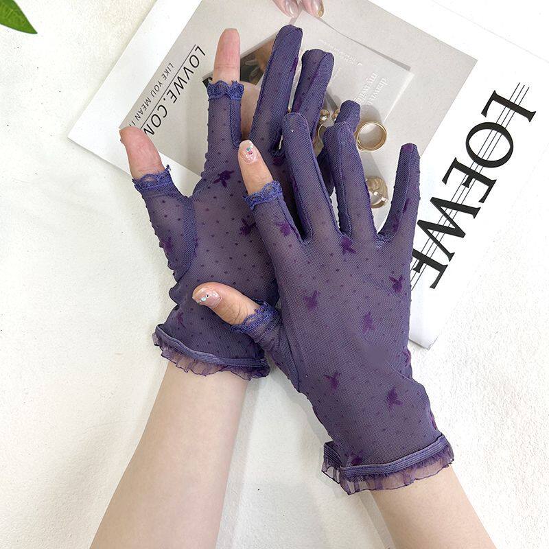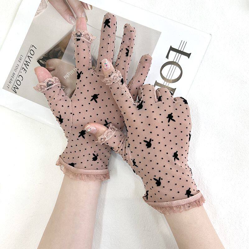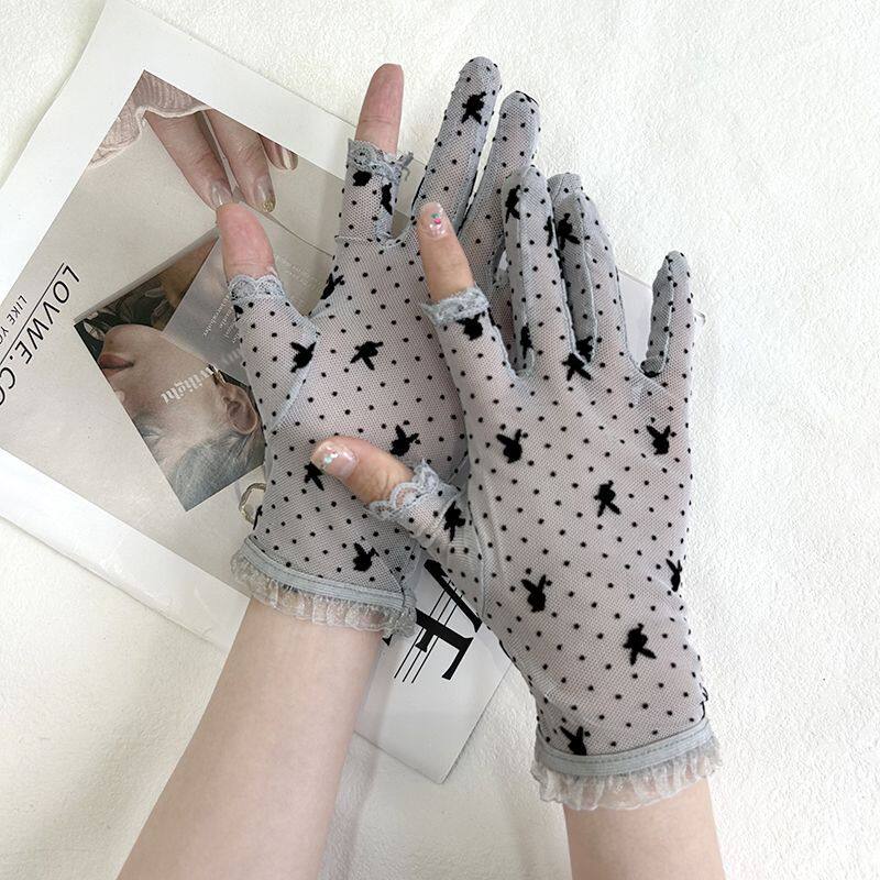 防晒手套女防紫外线冰丝露二指夏季户外电动车骑行开车手套女薄款