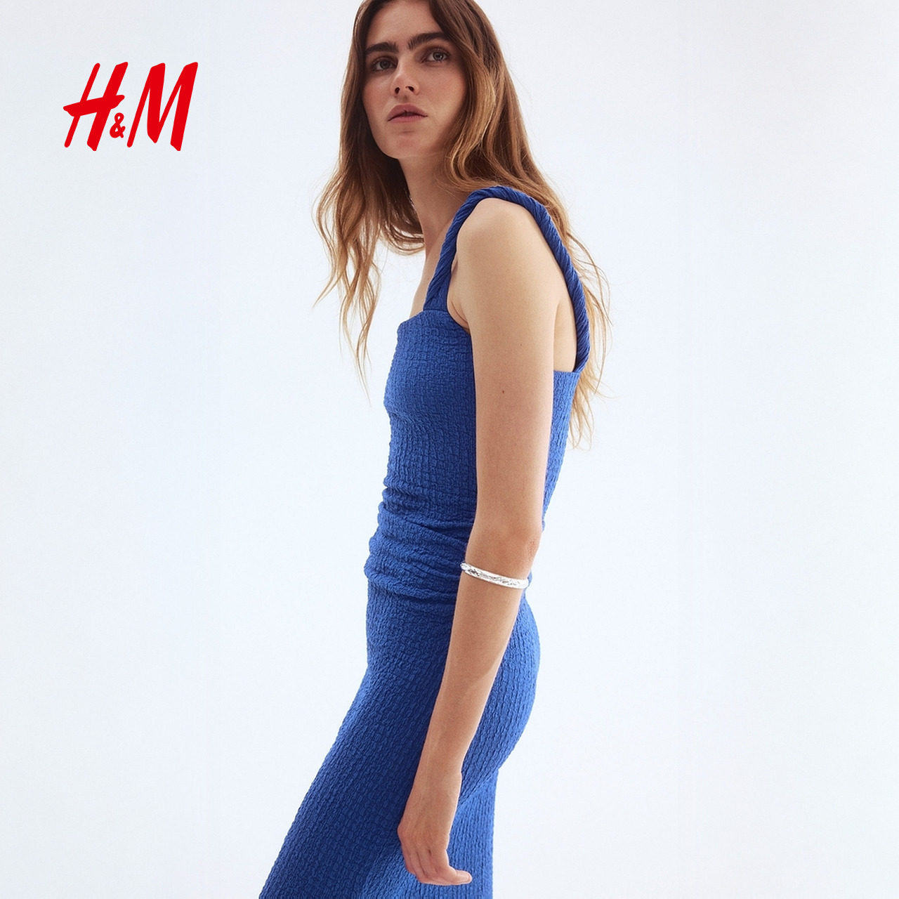 HM女装连衣裙夏季细吊带连衣裙纹理感汗布中长收腰连身裙1296786